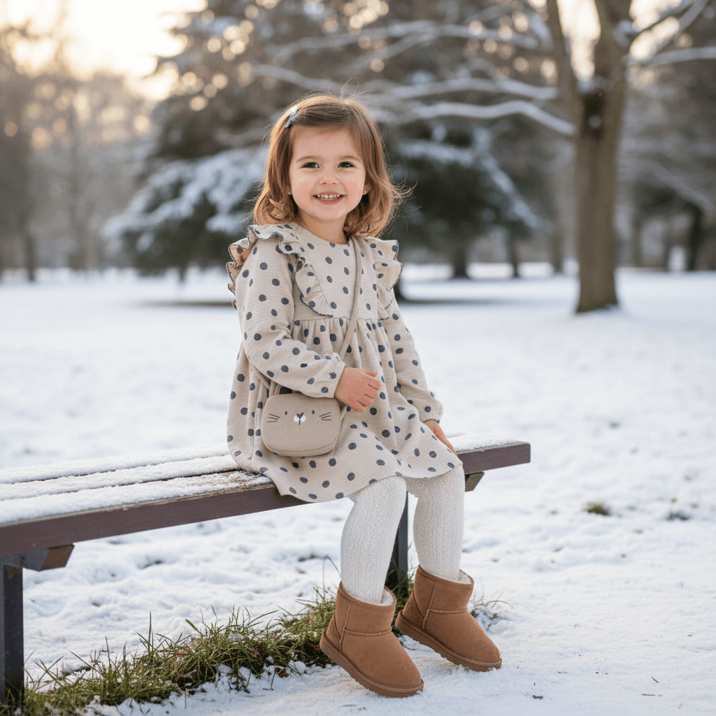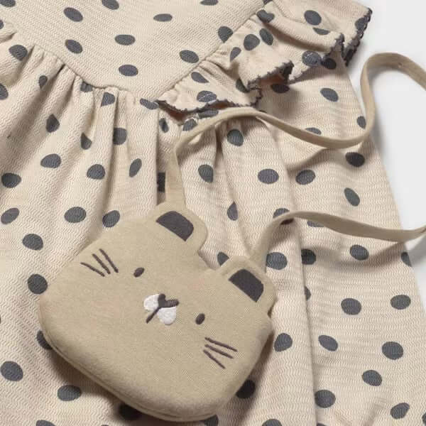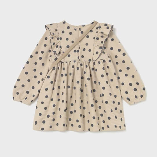 Abito MAYORAL a pois con borsetta , con polsini elasticizzati . Chiusura con clips sul retro.