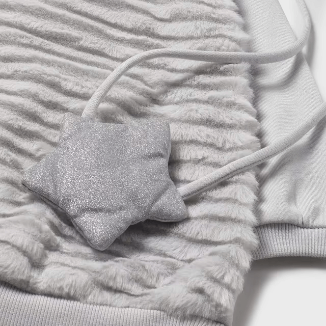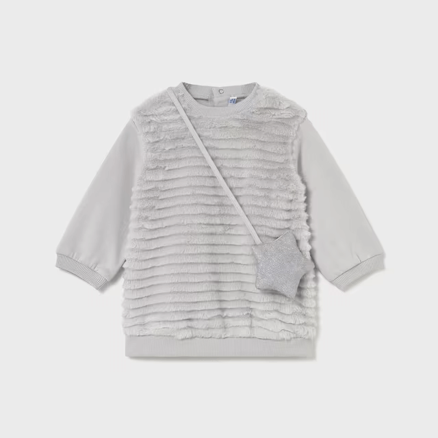 Deliziosa borsa per neonata pensata per conservare i suoi accessori preferiti. Un comodo accessorio che completa il suo look. Chiusura con bottone nascosto per un vestibilità semplice e veloce. Divertente tessuto pellicciotto perfetto per i suoi look caldi.