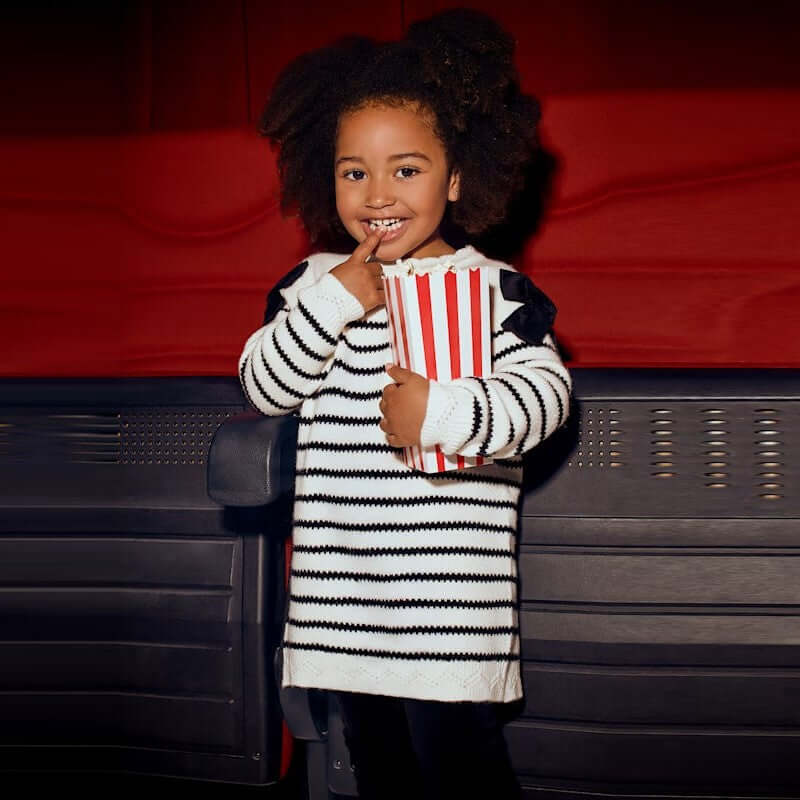 Le righe bianche e nere sono un grande classico della moda che non passa mai di moda! Ispirate allo stile marinaro francese, le righe sono eleganti, versatili e sempre attuali. Questo abito può essere indossato in mille modi diversi: con ballerine per un look elegante, con sneakers per uno stile sportivo, o con stivaletti per un outfit trendy. I fiocchi aggiungono quel tocco di dolcezza che trasforma un classico in qualcosa di speciale!