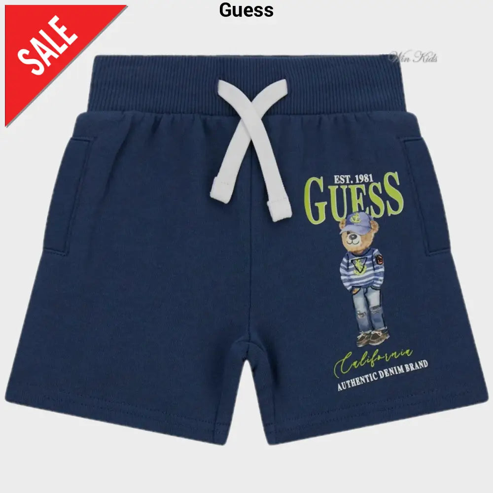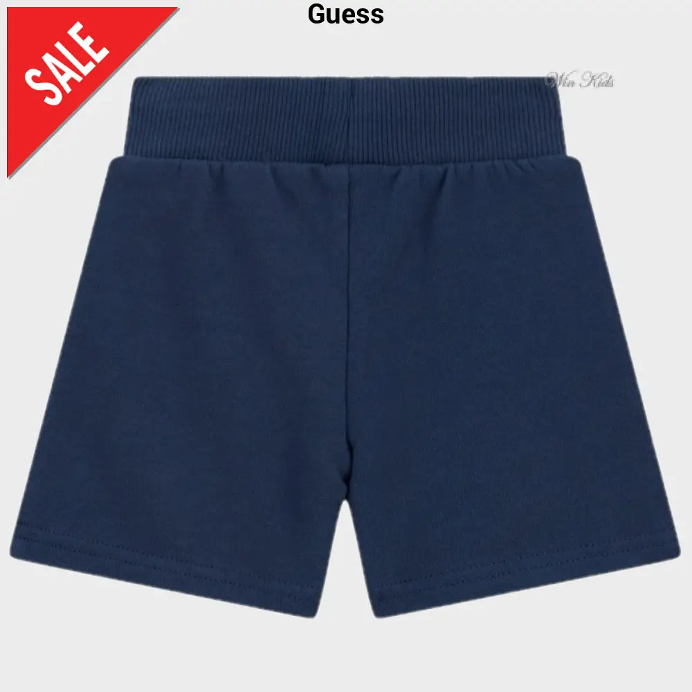 Bermuda GUESS in cotone con interno garzato, tasche laterali, elastico e laccetto regolabile in vita, logo stampato a rilievo e ricami applicati. Dalla taglia 3-6 mesi alla taglia 24 mesi il modello presenta finte tasche laterali.