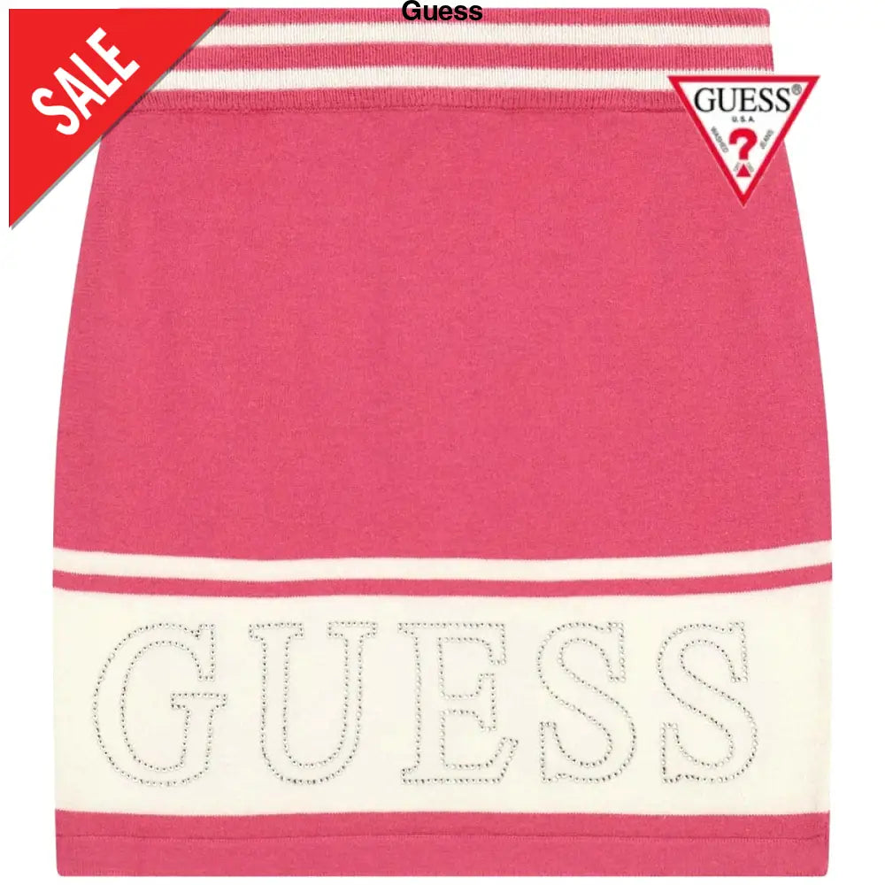 Gonna GUESS in maglia con elastico in vita , logo in strass applicati.