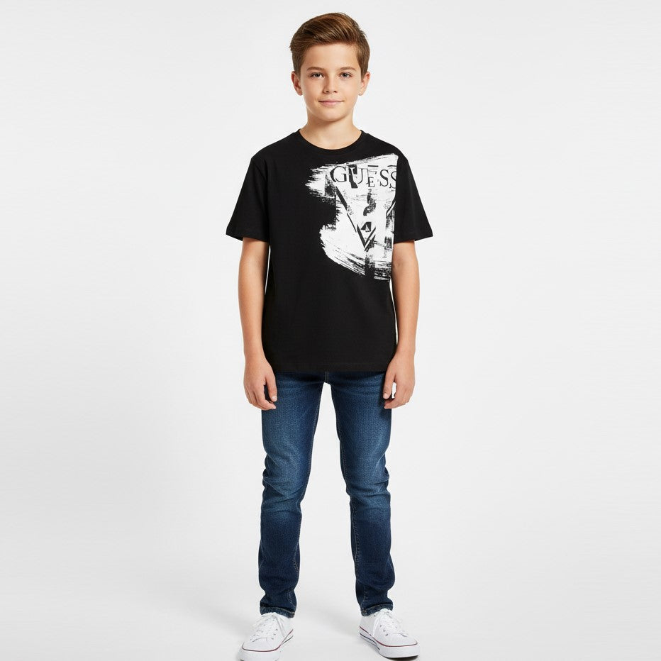 T-shirt GUESS nera con logo bianco 8 anni - 16 anni