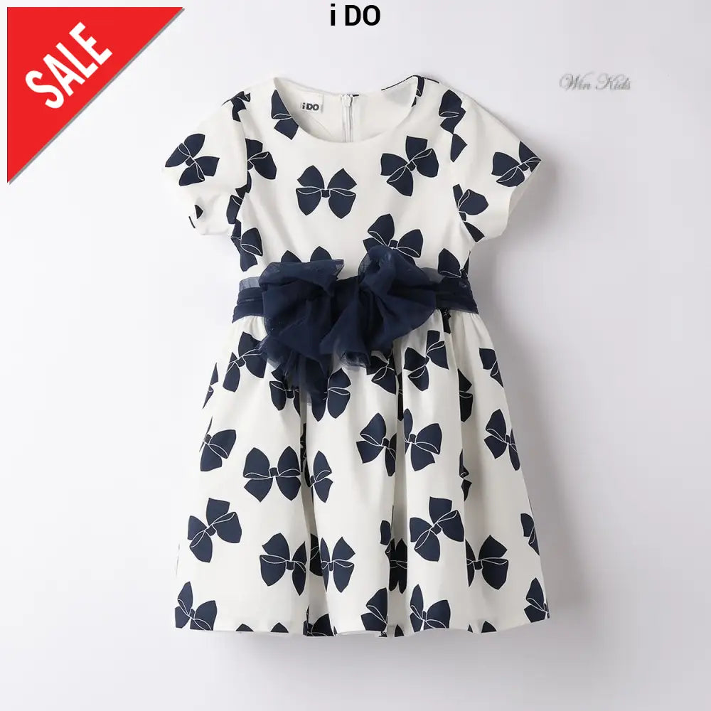 Abito I DO fantasia fiocchi bianco e blu dalla 12 mesi alla 8 anni