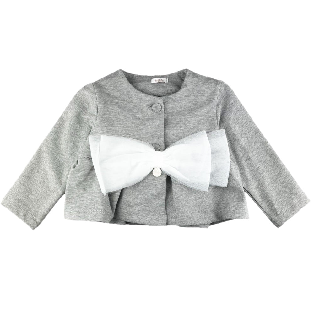 Giacchina LE BEBE' in felpa con interno felpato fchiusura con bottoncini fiocco in raso applicato con pendente logato.