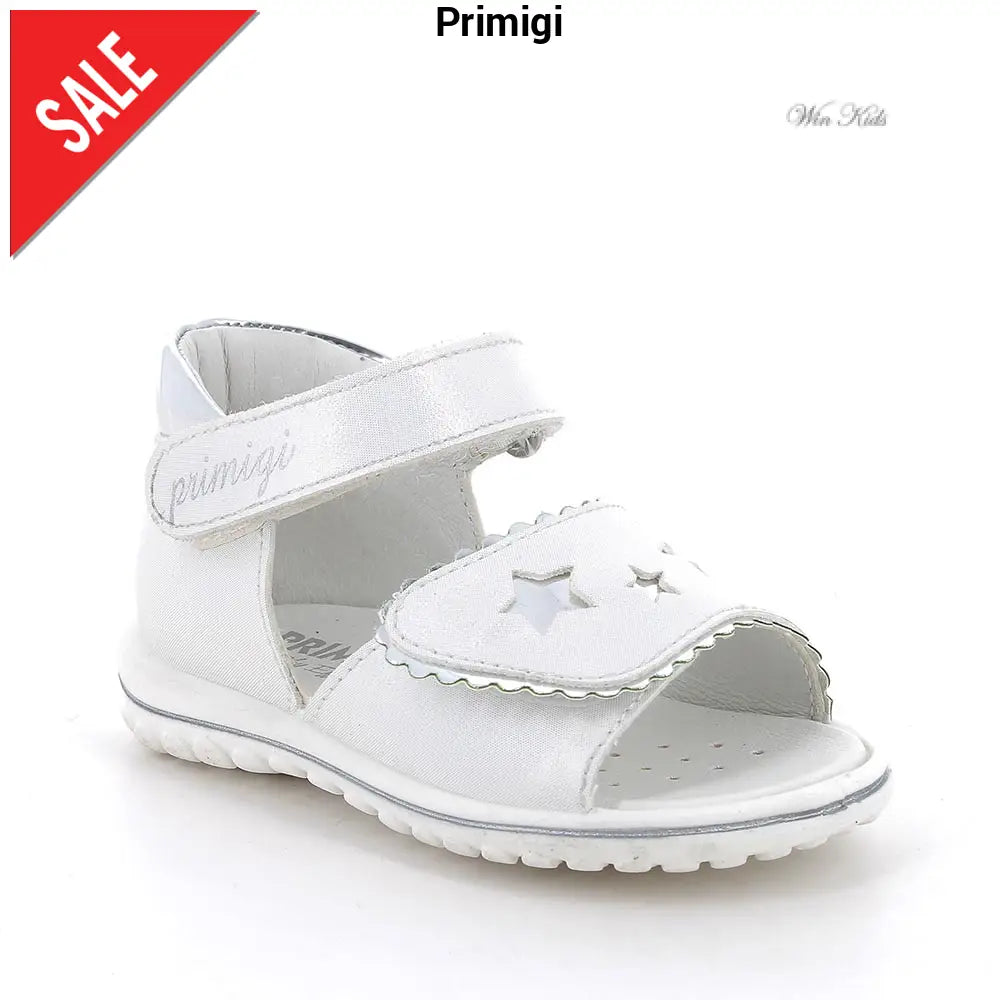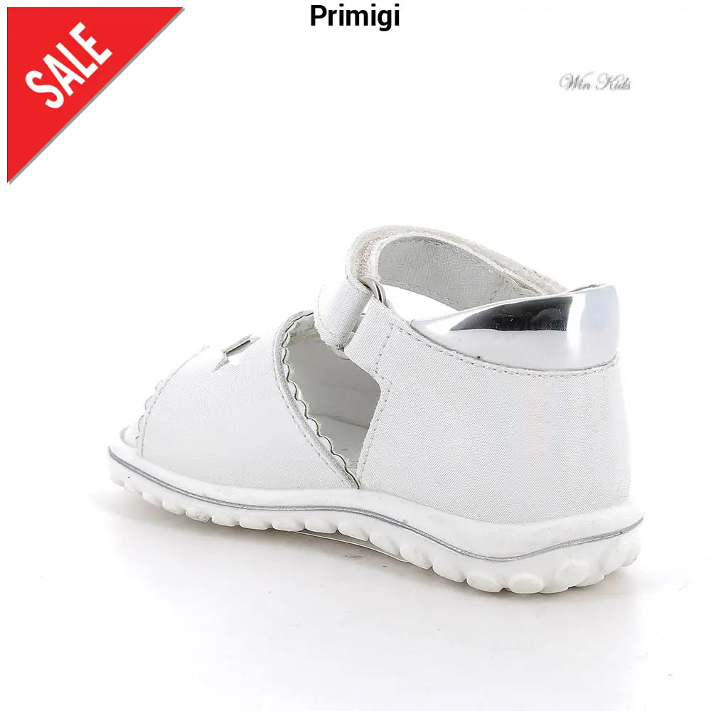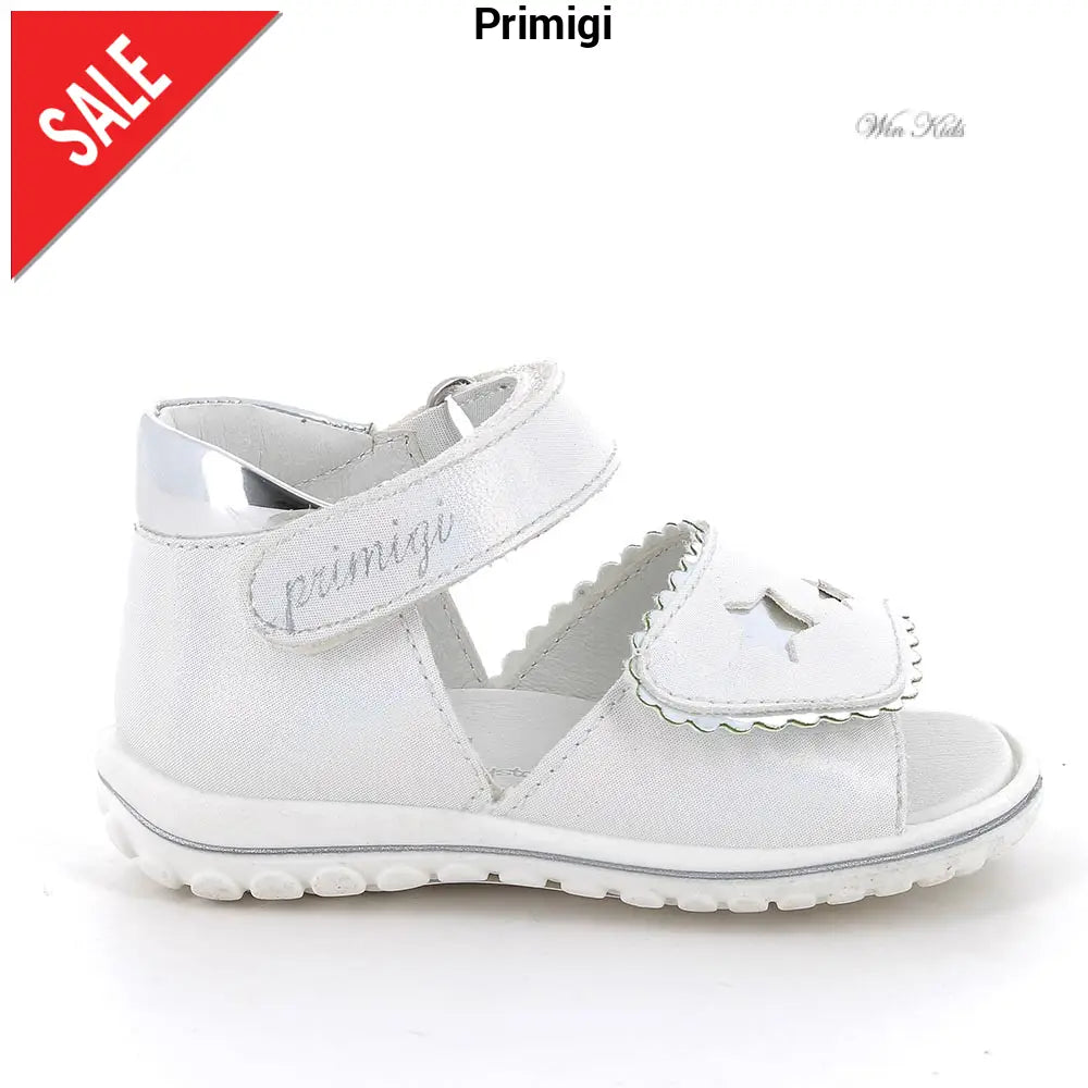 Sandali PRIMIGI bambina bianchi , chiusura con doppio velcro regolabile, sottopiede in vera pelle. fondo in gomma antiscivolo.