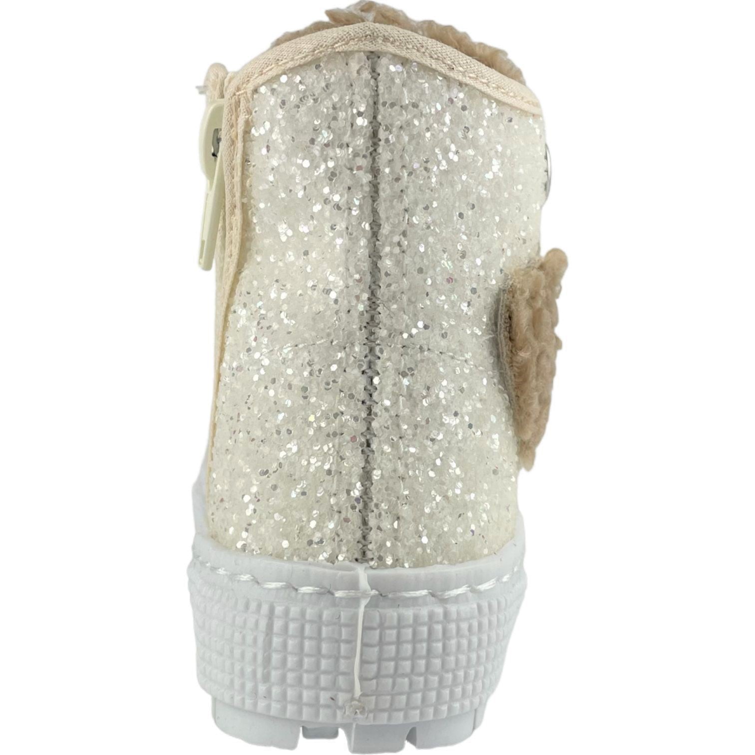Scarpa SPINDOCTOR con glitter ed applicazione in ecopelliccia chiusura con lacci e zip laterale per facilitare la calzata. fondo in gomma antiscivolo.MADE IN ITALY