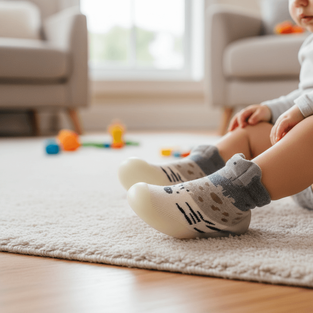 MAYORAL sock slipper with elastic cotton upper part and non-slip rubber sole. Suitable for first steps. Excellent as a nursery shoe.