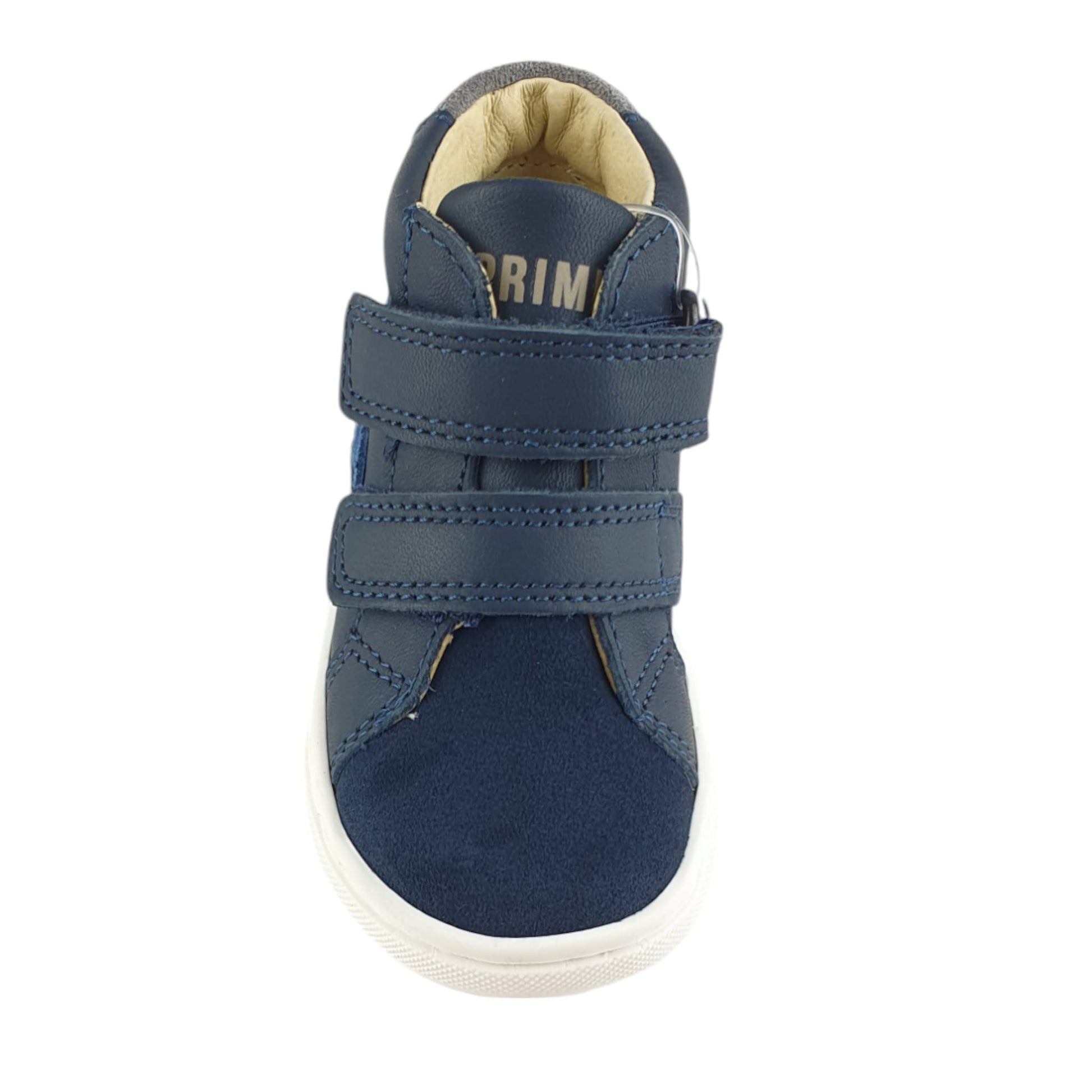 PRIMIGI leather shoes with suede toe, double velcro fastening, leather insole, rubber sole with slide. Model suitable for first steps.