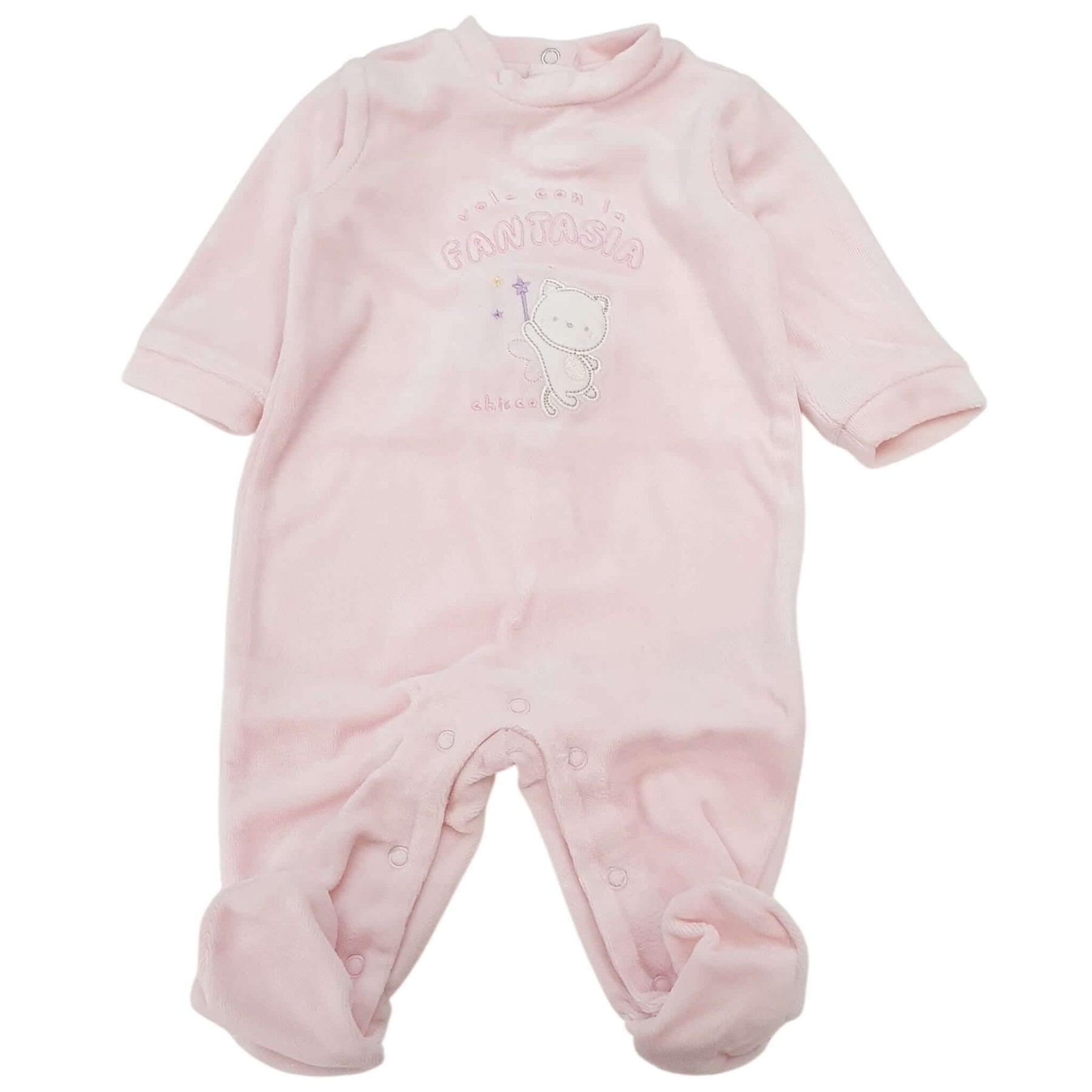 CHICCO outfit consisting of chenille onesie with embroidery, cotton hat and bib.