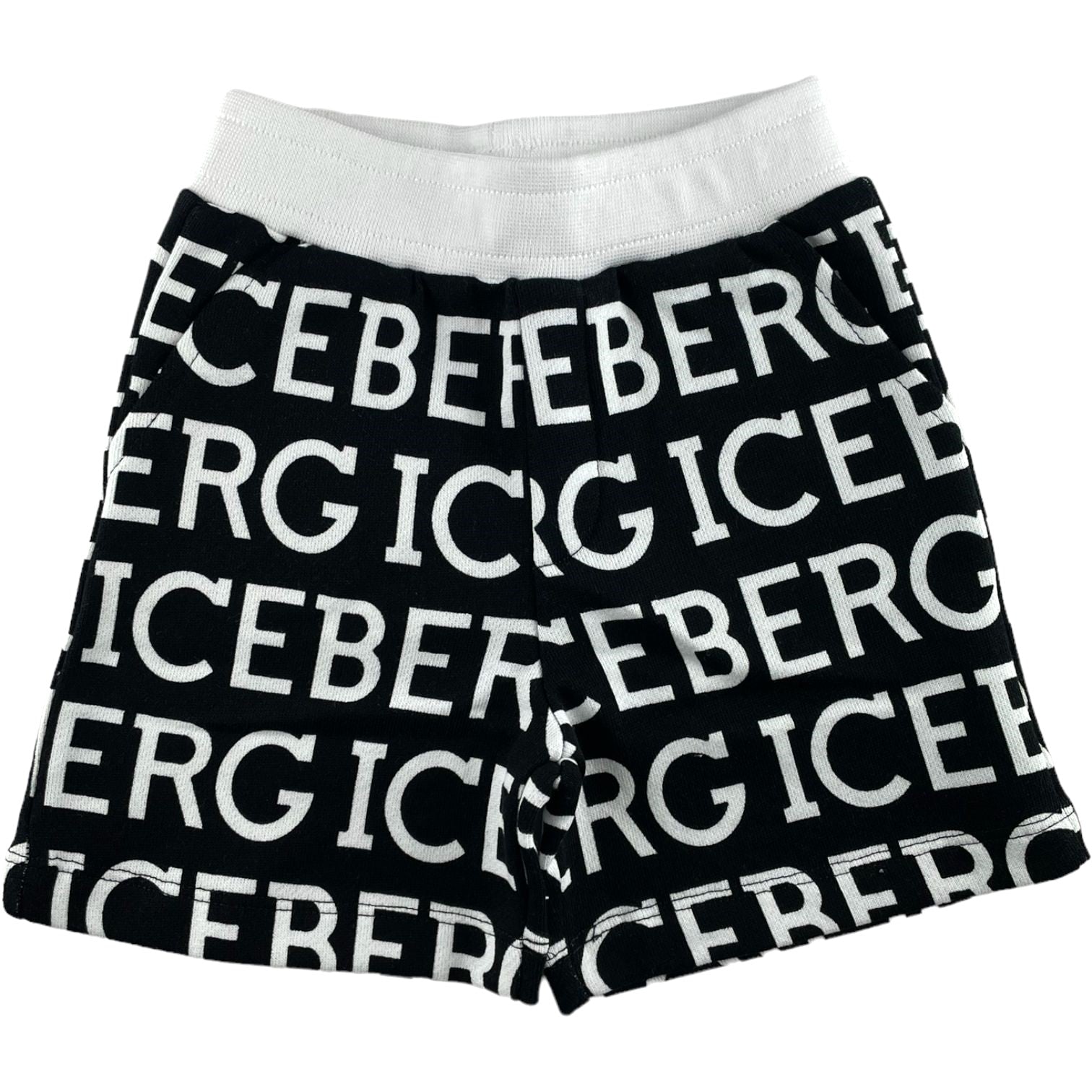 ICEBERG Bermuda shorts in brushed cotton with maxi logo pattern, elastic waist.