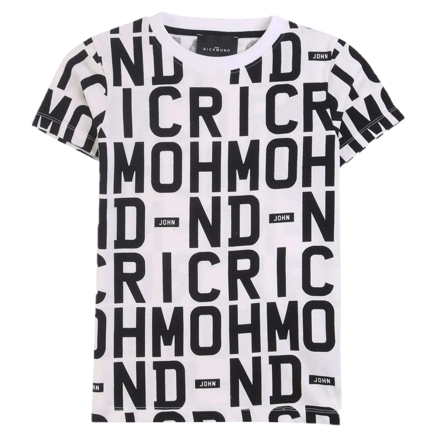 JOHN RICHMOND T-shirt in cotton with maxi logo pattern, contrasting finishes.