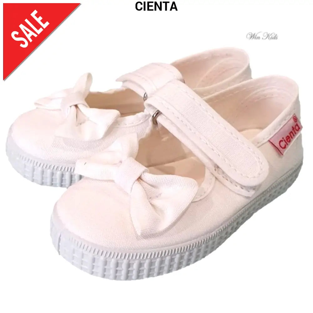 CIENTA shoe in fabric with applied bow, adjustable velcro closure, non-slip rubber sole. SCENTED MADE IN SPAIN.
