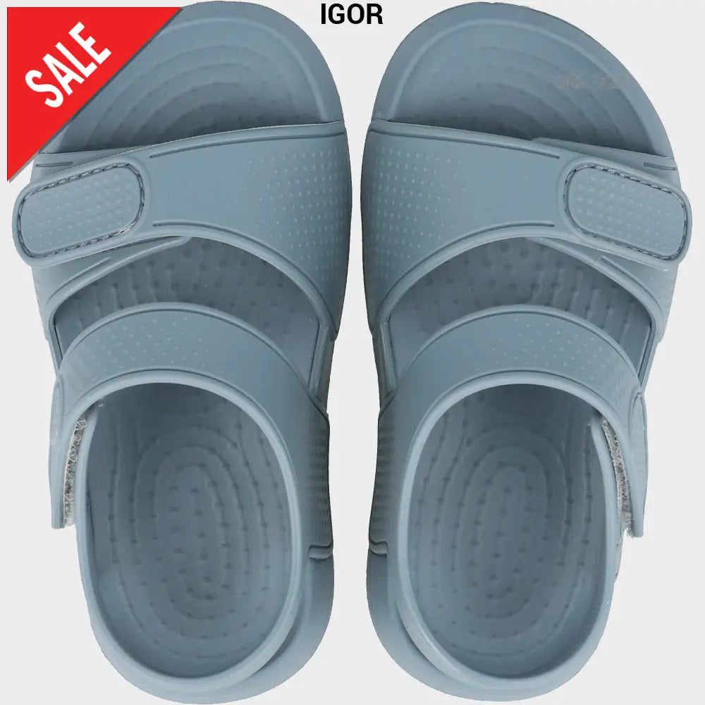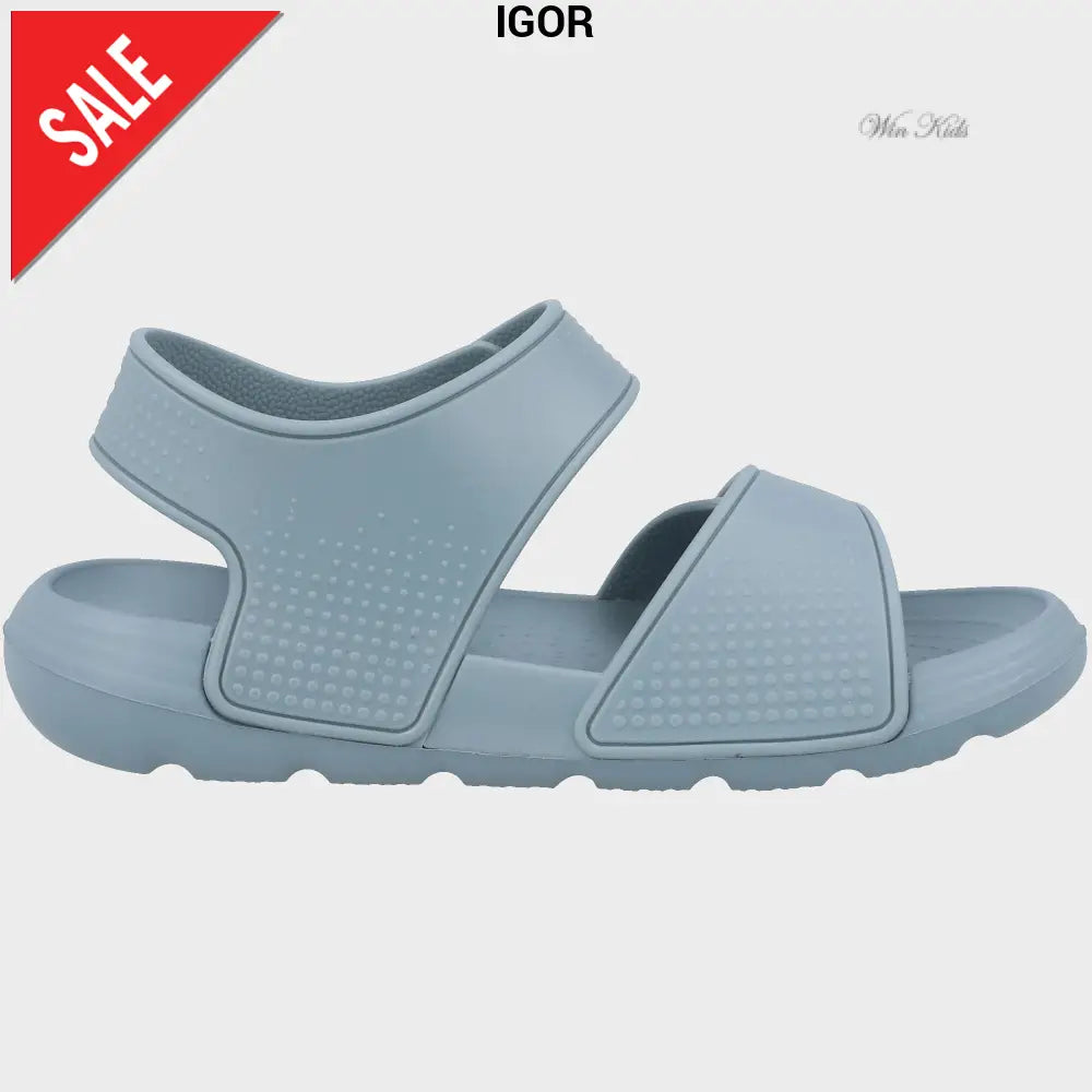 IGOR sandals in soft rubber with double velcro fastening, applied side logo.