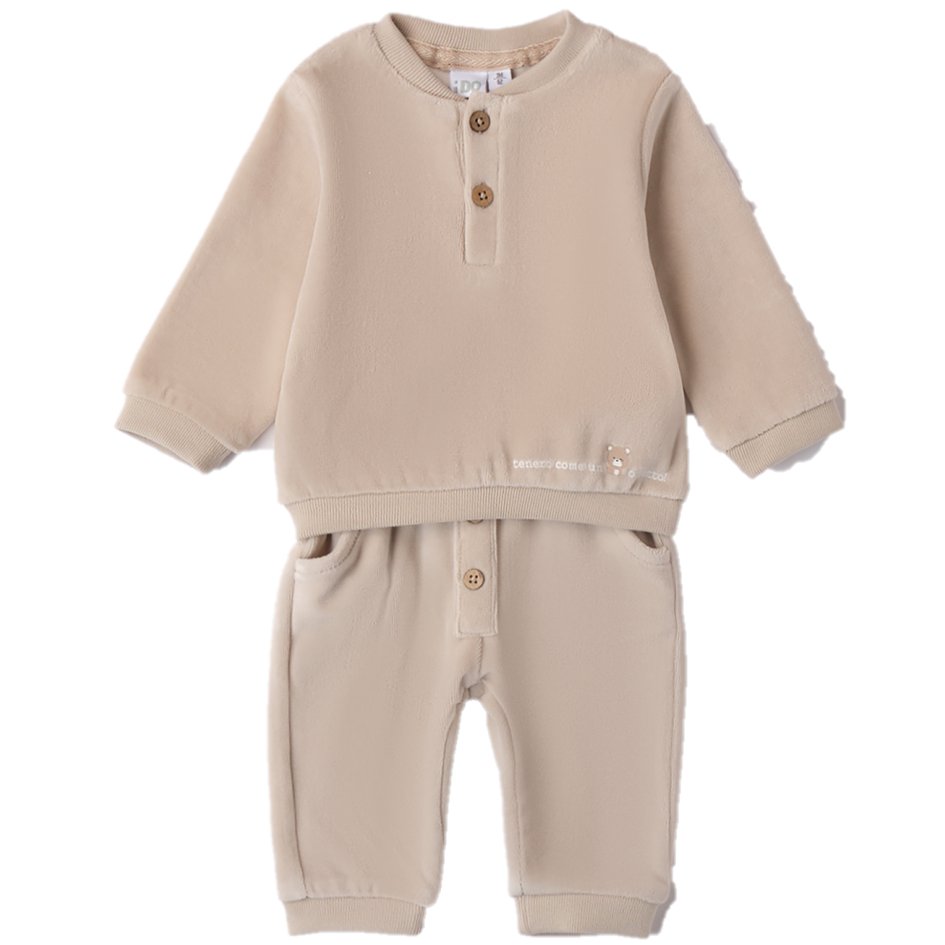 i DO tracksuit in chenille consisting of sweatshirt and trousers with contrasting finishes and print.