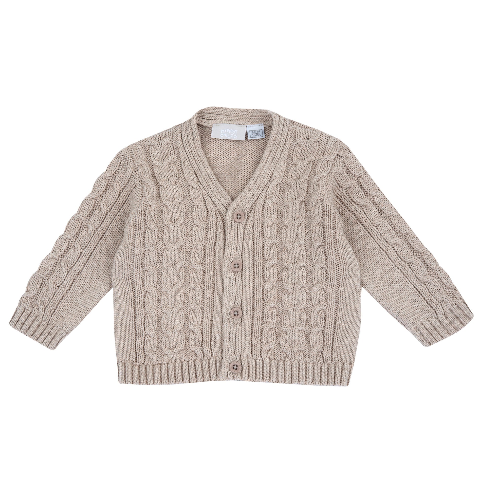 Cardigan Chicco Mixed Wool en Jersey trabajó con trenzas de fantasía, cierre de botones.