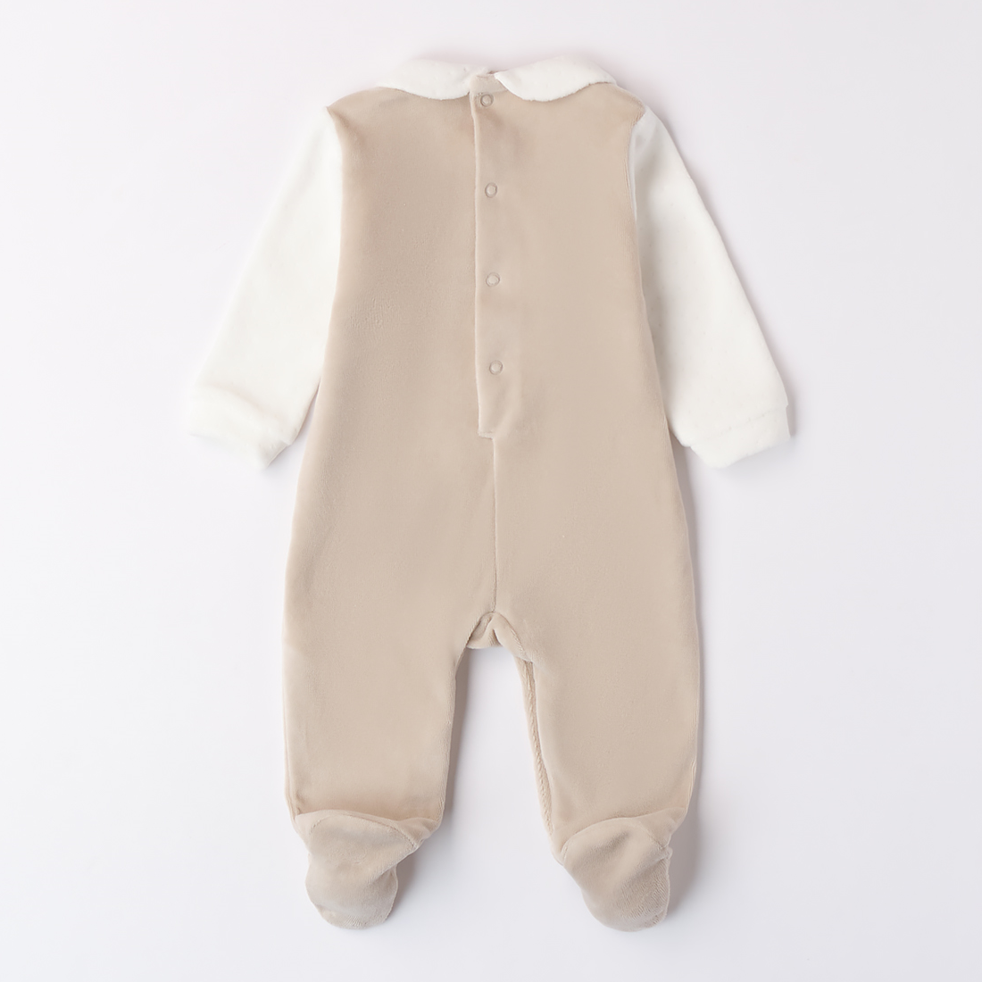 Ciniglia Cinille con bordados contrastantes, que se abre en la parte posterior con clips.