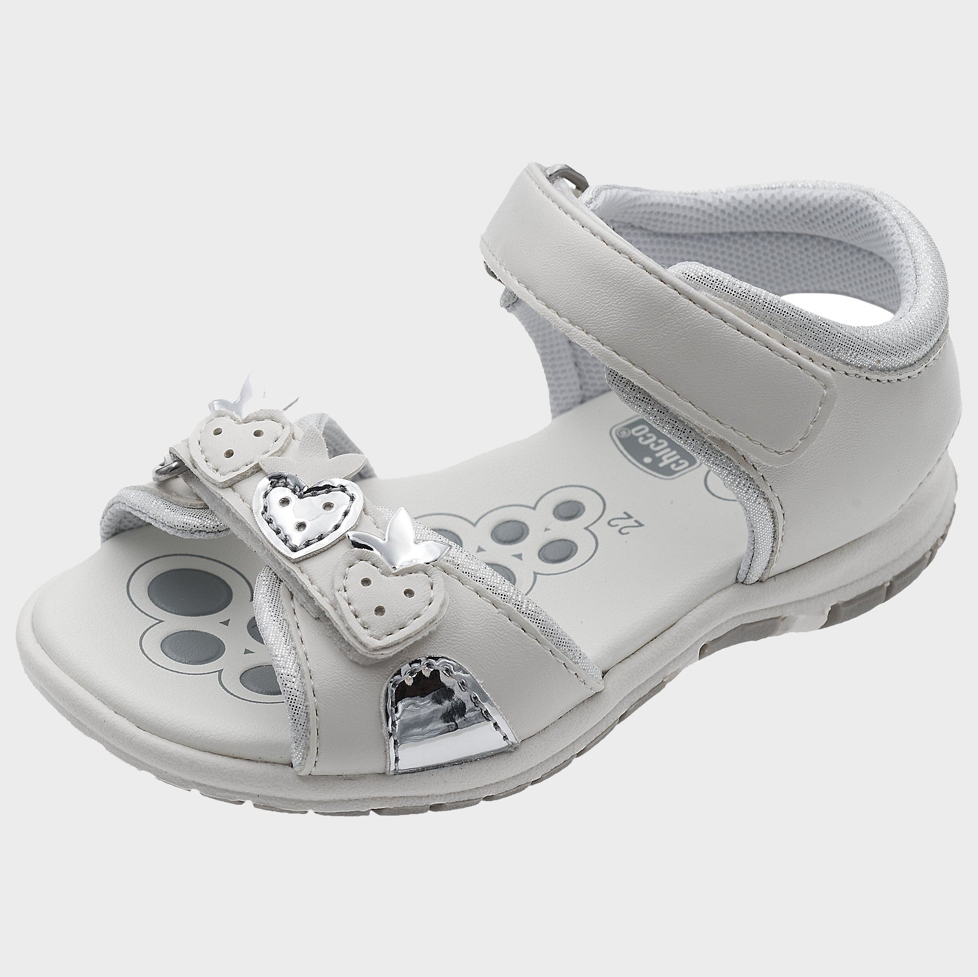 Chicco en sandalias ecológicas con cierre de velcro doble con fresas aplicadas, inserciones laminadas aplicadas, Subsidios blandos, fondo de goma sinlips.