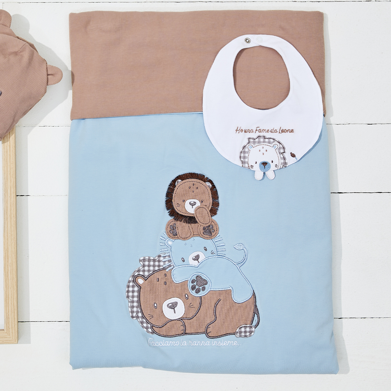 Cubierto con algodón con tela y aplicaciones de bordado, modelo de silla de ruedas.