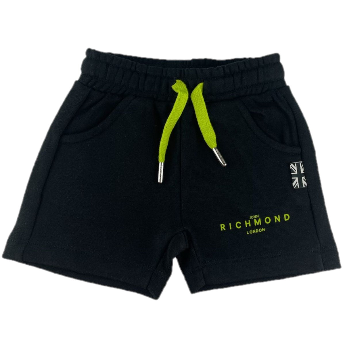 Bermuda JOHN RICHMOND in cotone con interno garzato, logo stampato in colore a contrasto, tasche laterali, elastico e laccetto regolabile in vita.