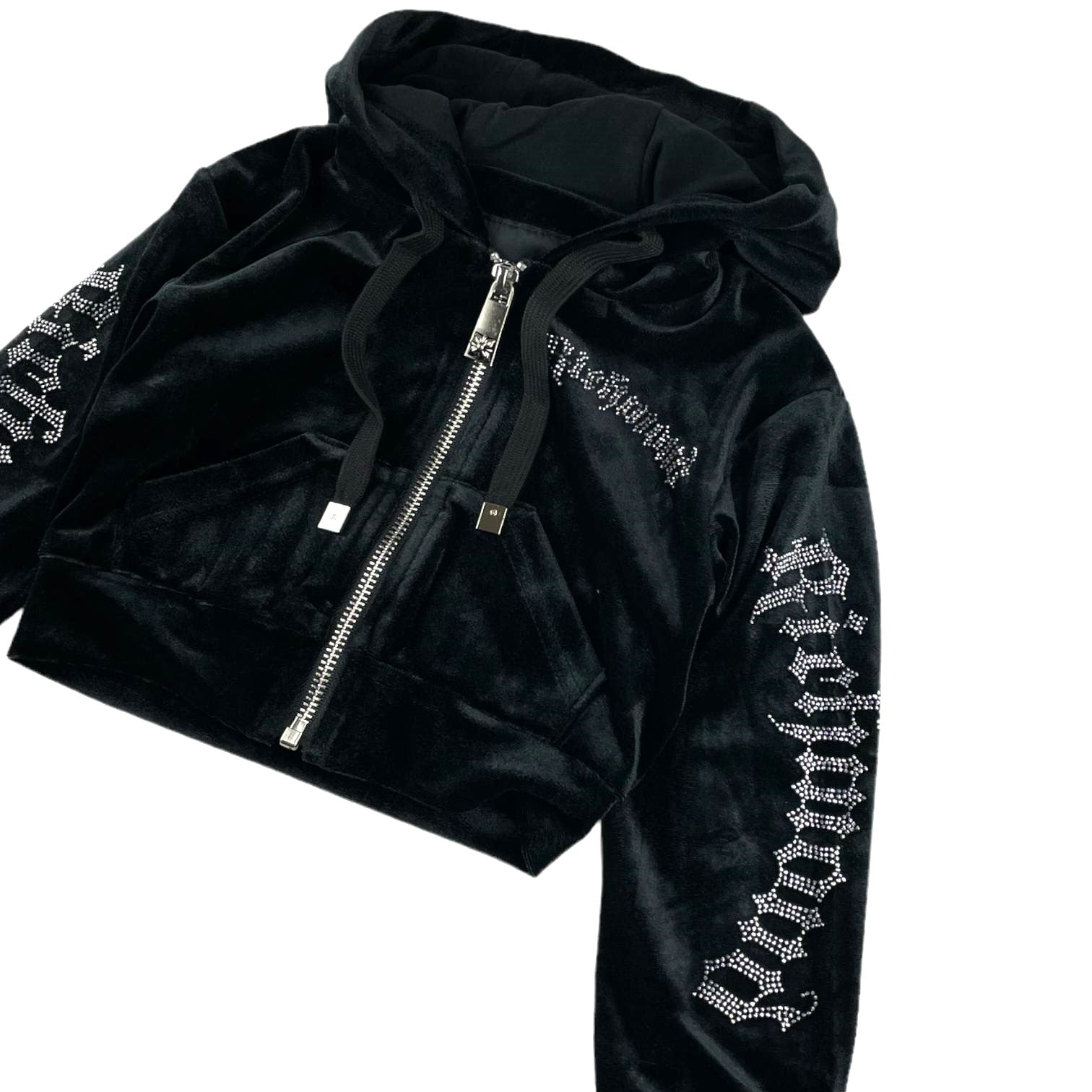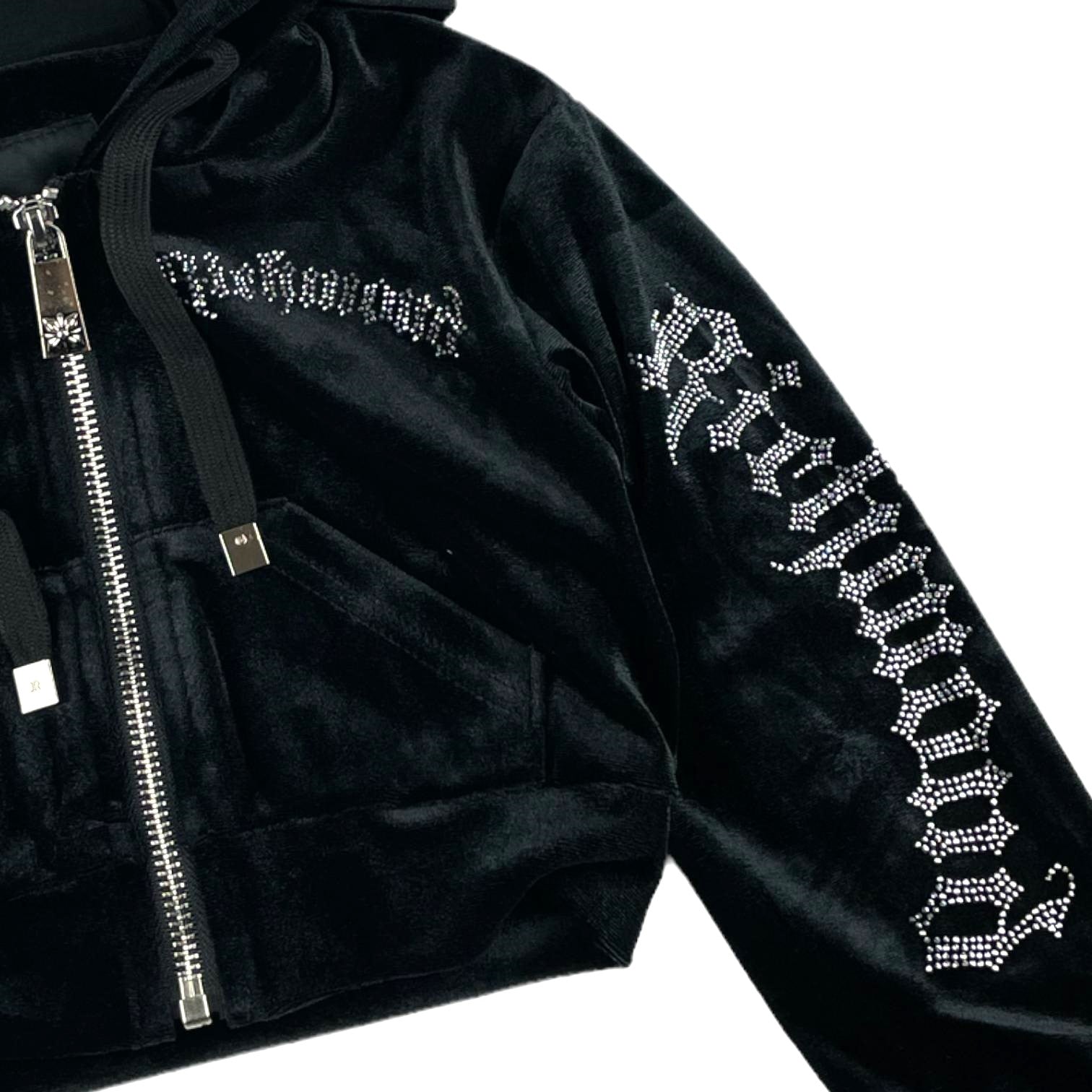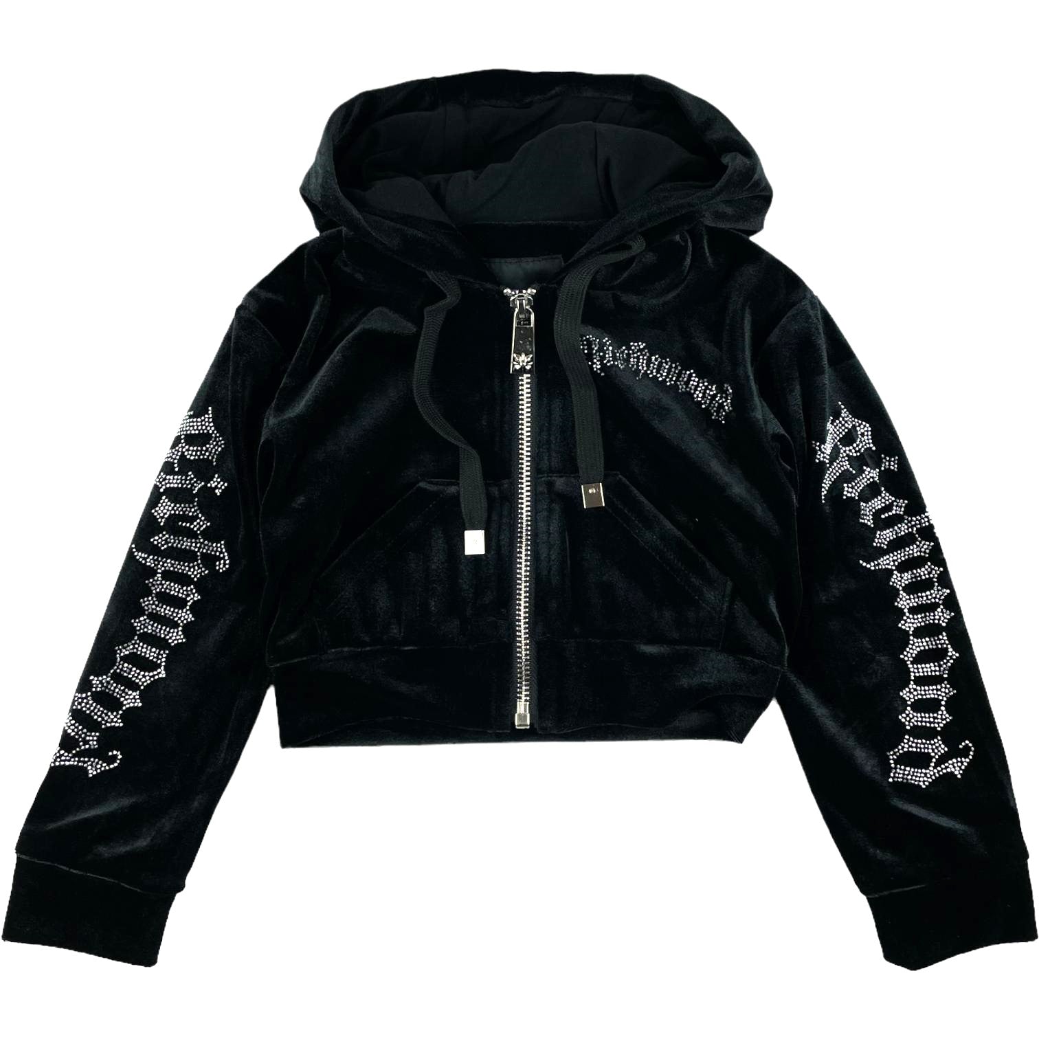 Felpa JOHN RICHMOND in ciniglia modello corto con applicazione in borchie. apertura zip intera.