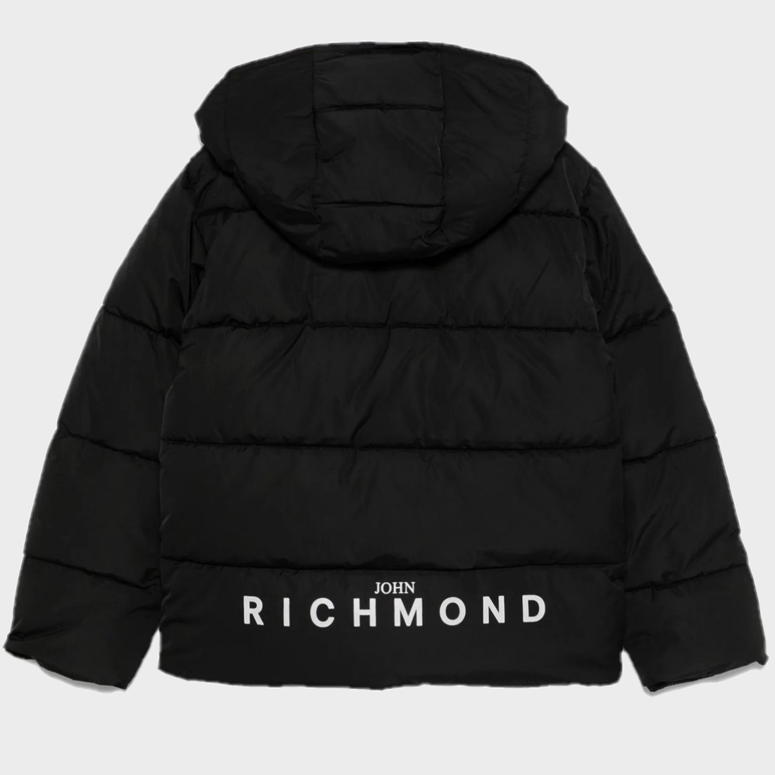Giubbotto JOHN RICHMOND con cappuccio, chiusura con zip, stampa logo a contrasto, interno cappuccio in colore bianco.