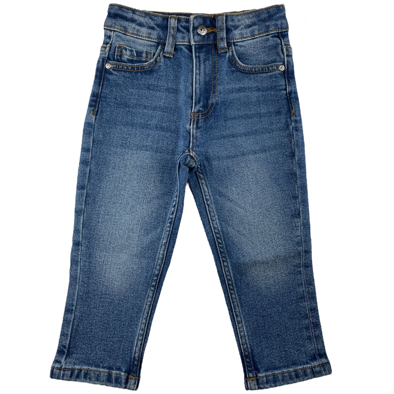 Jeans JOHN RICHMOND effetto vintage ,chiusura bottone logato e zip ,rifiniture a contrasto logo RICH stampato sul retro, regoli in vita.