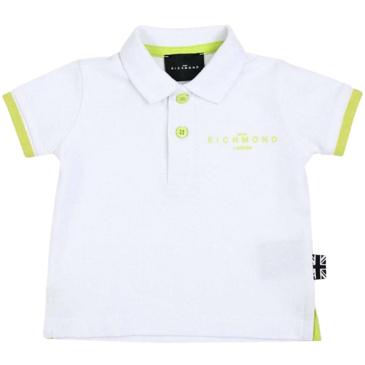 Polo JOHN RICHMOND in cotone con rifiniture in colore a contrasto alle maniche, logo stampato laterale e sul retro, chiusura con bottoncini logati, spacchi laterali.