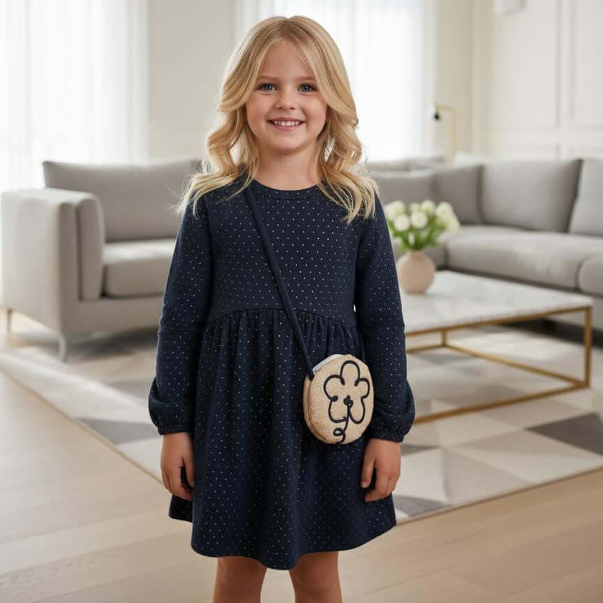 Abito e Borsetta MAYORAL in felpa con pois glitter.