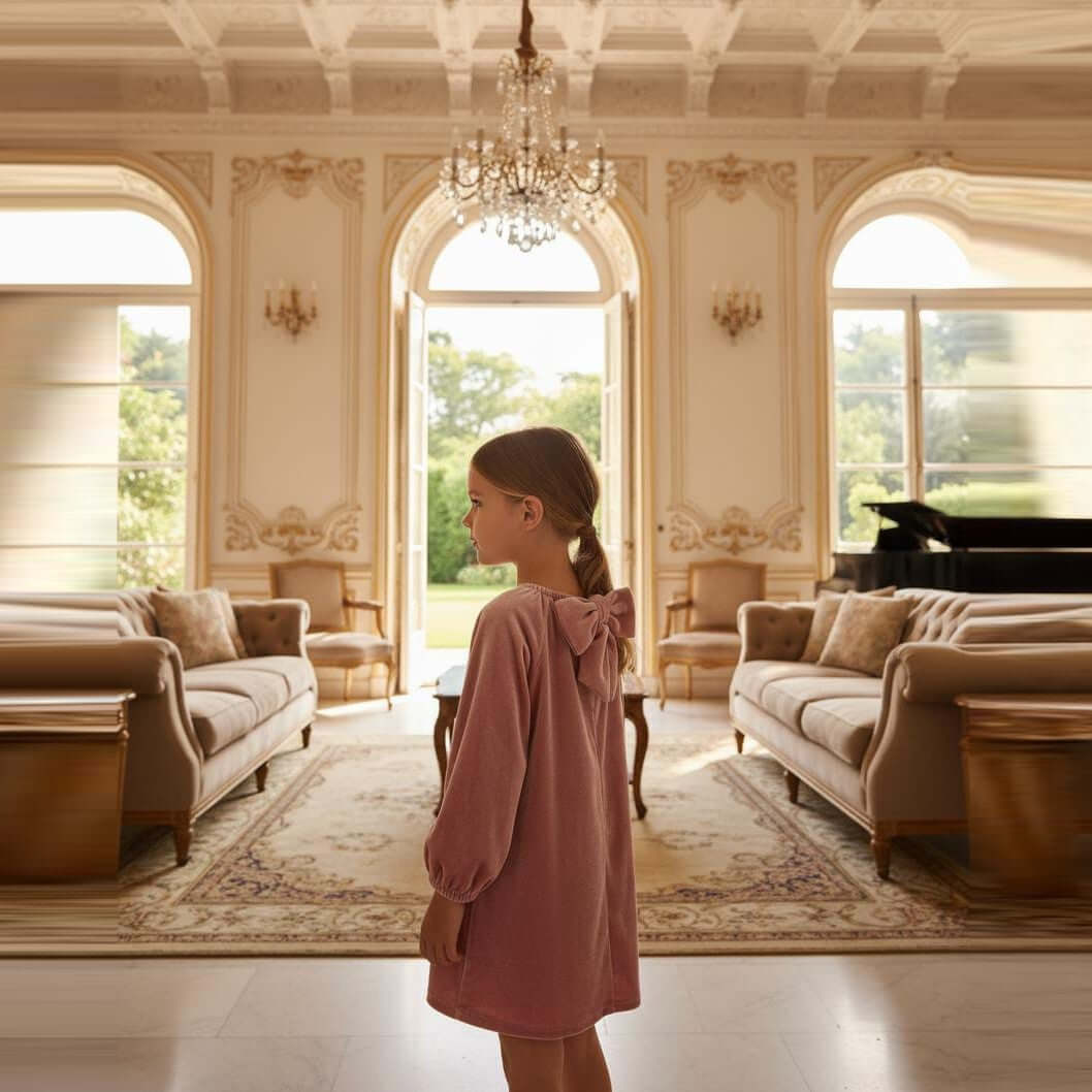 Abito MAYORAL in velluto rosa con fiocco sul retro 2 anni - 10 anni