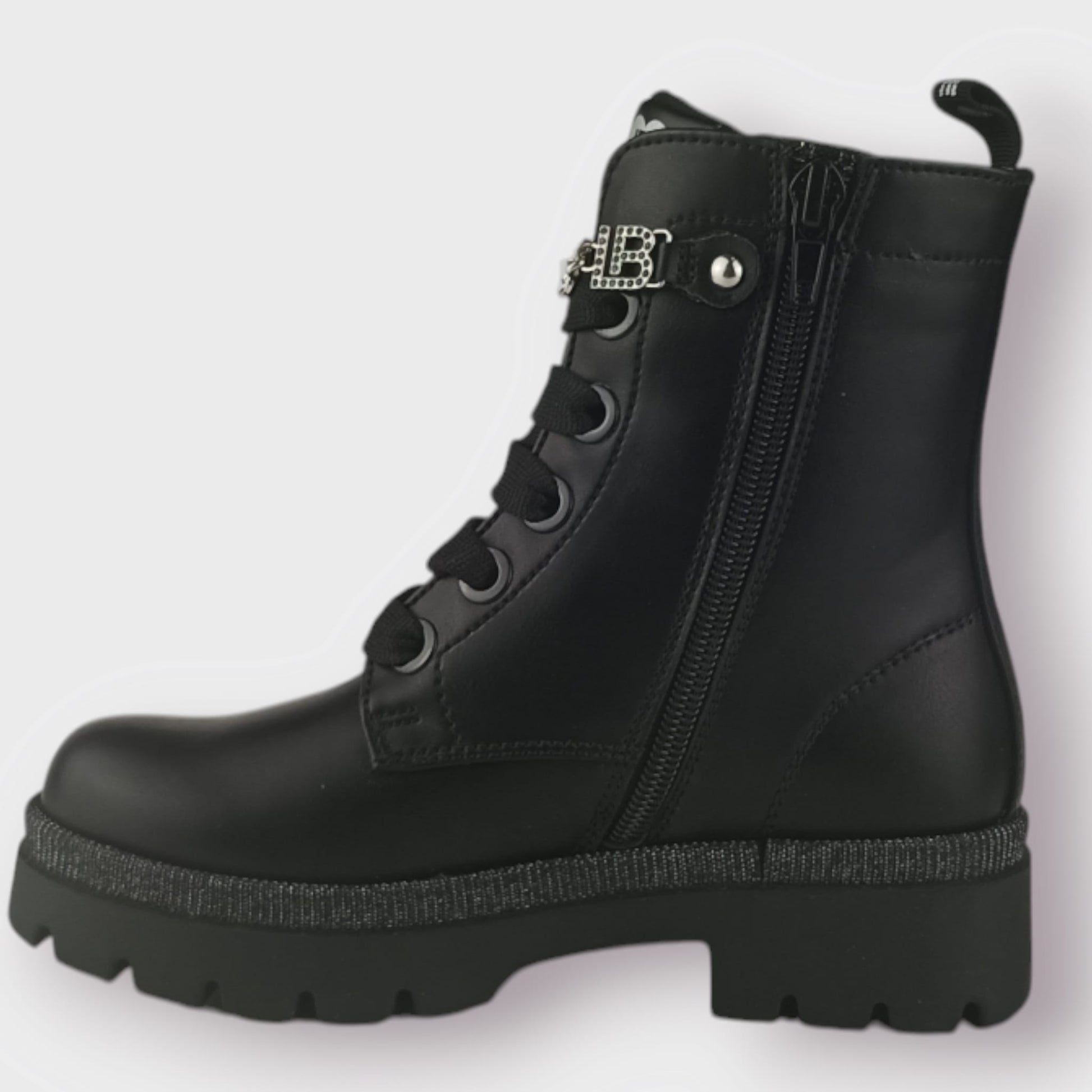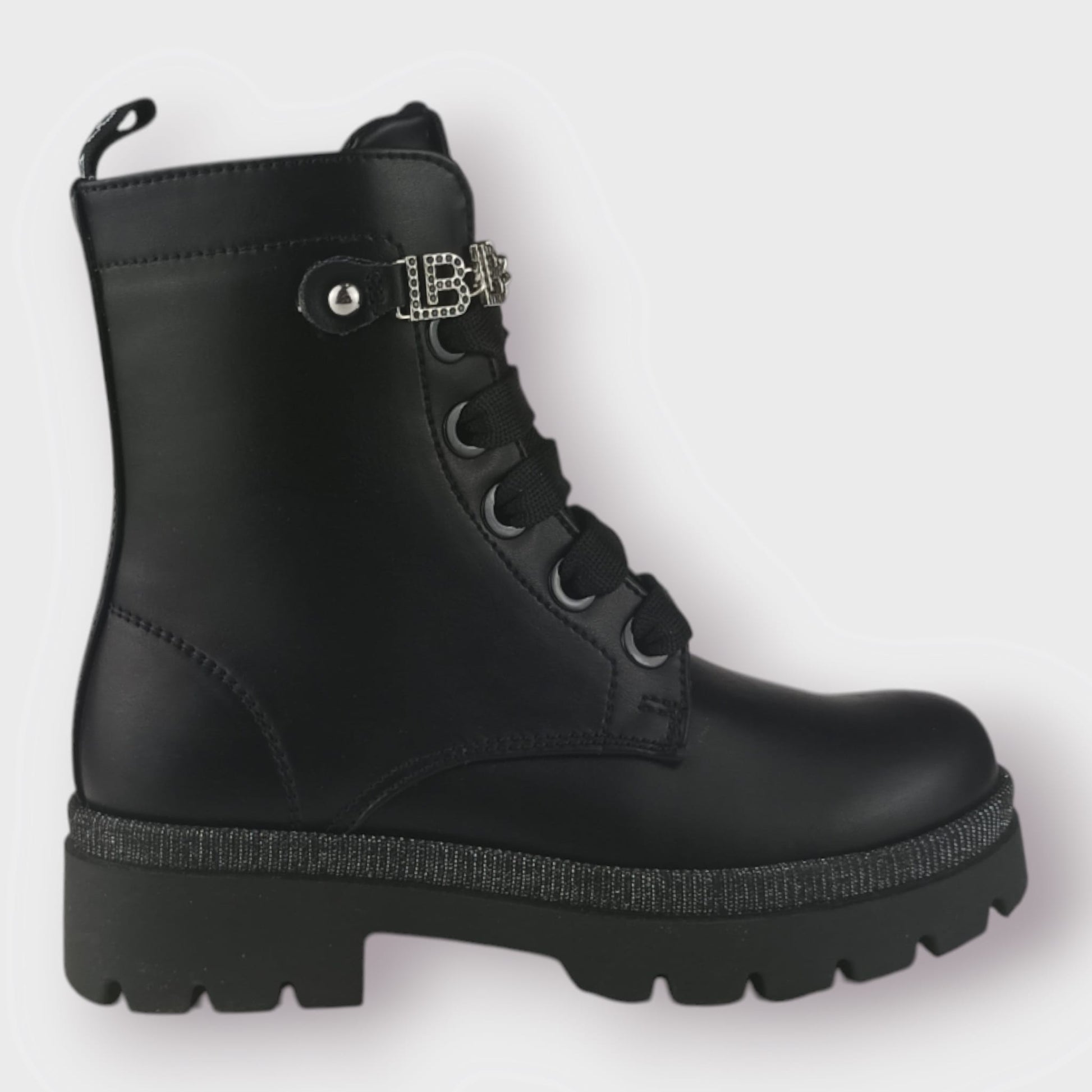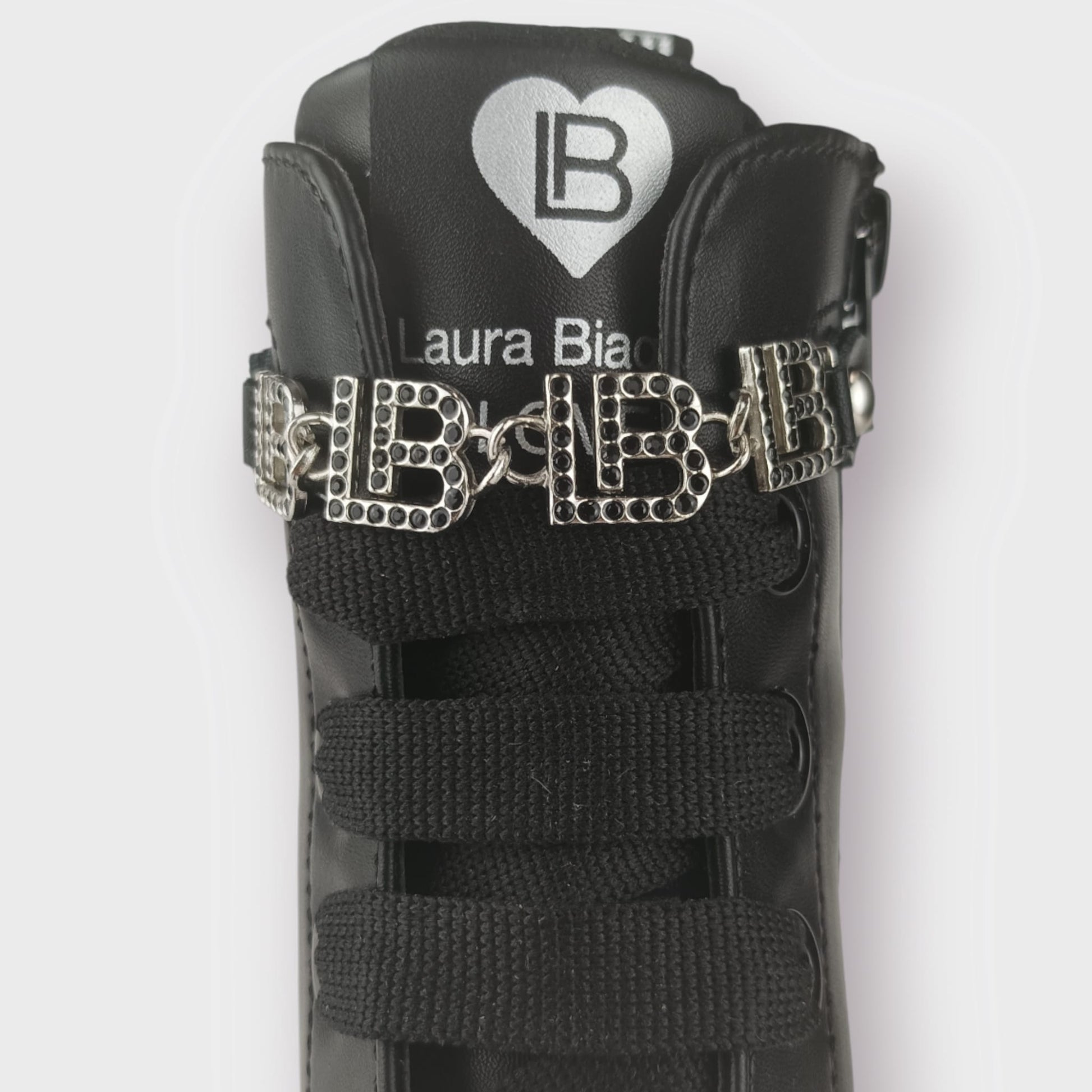 Anfibio LAURA BIAGIOTTI in ecopelle con chiusura lacci e zip laterale , applicazione logata a rilievo con strass ,fondo leggero in gomma antiscivolo.