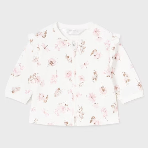 - felpa a fantasia in colori a contrasto, voilant applicato al giro manica, chiusura con zip;