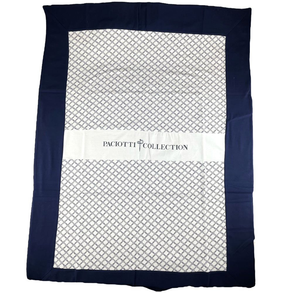 Coperta CESARE PACIOTTI in felpa con bordatura blu a contrasto, logo cesare paciotti al centro. modello da carrozzina.