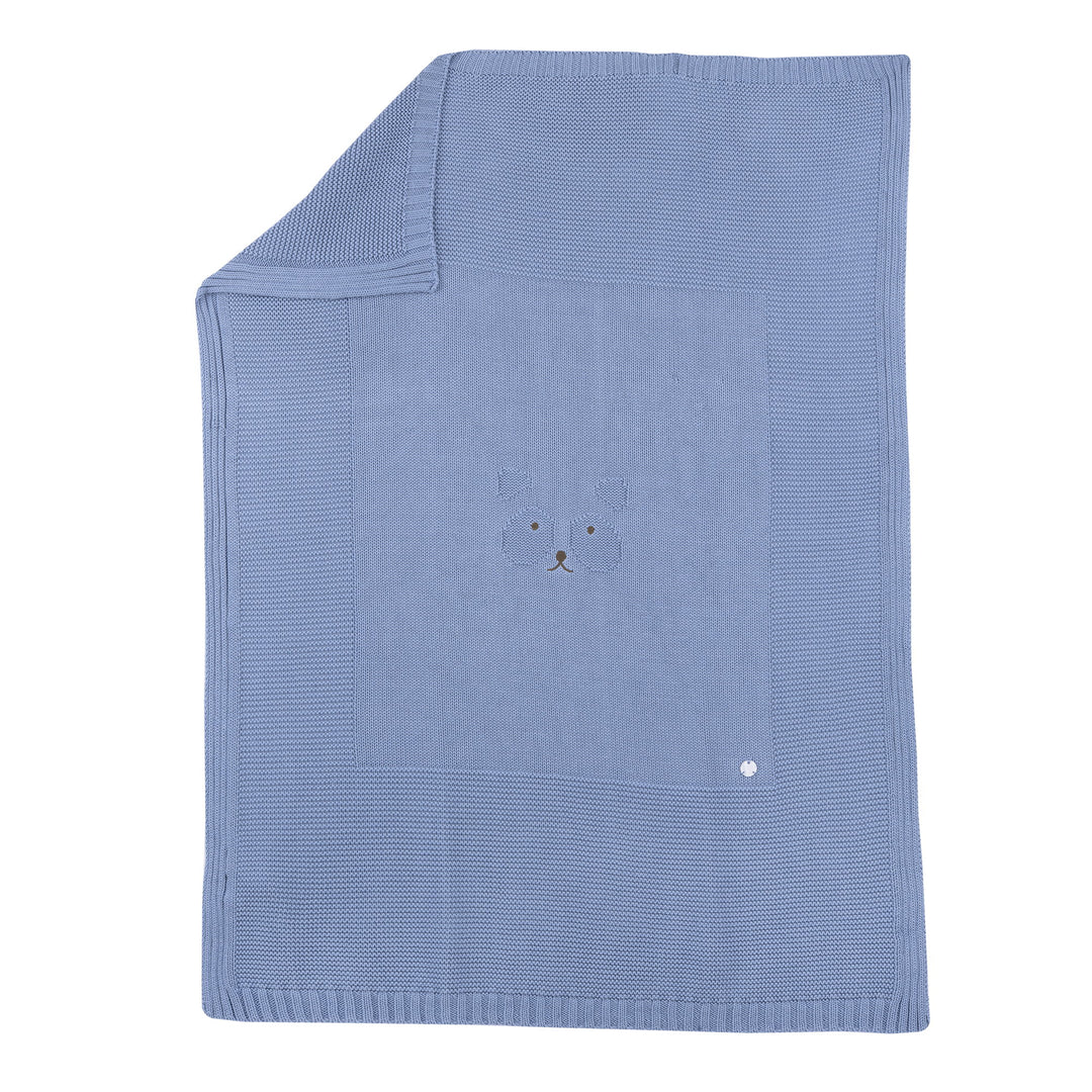 Coperta CHICCO in caldo cotone con ricamo lavorato al centro e logo applicato a rilievo, modello per carrozzina.