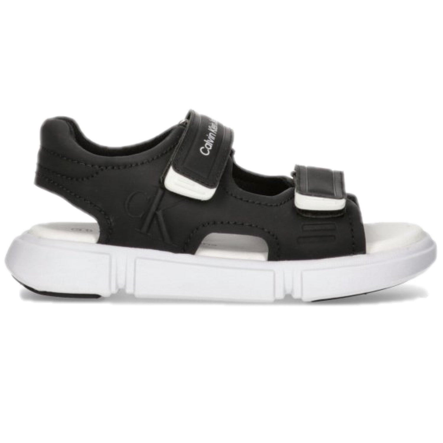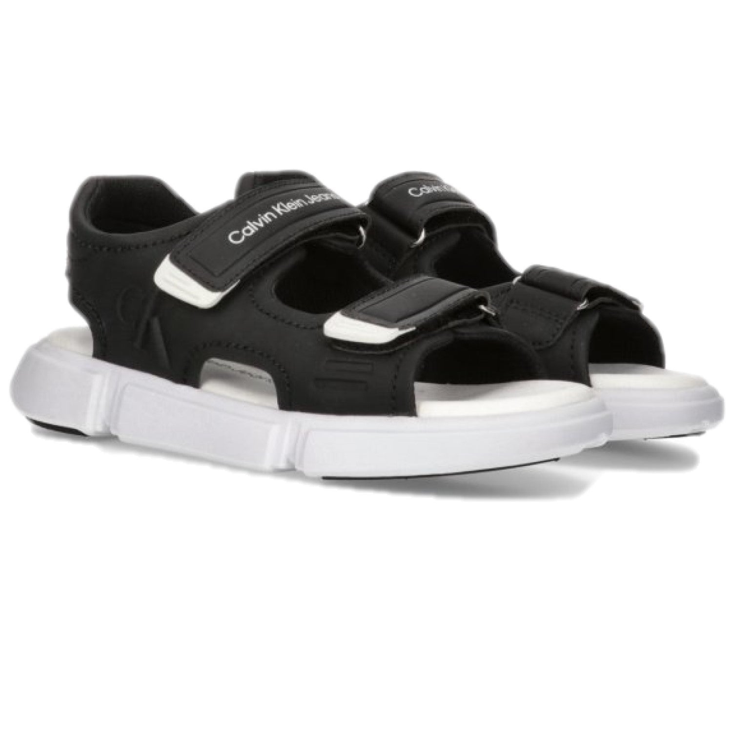 Sandali CALVIN KLEIN neri chiusura con doppio strappo regolabile, fondo in gomma antiscivolo.