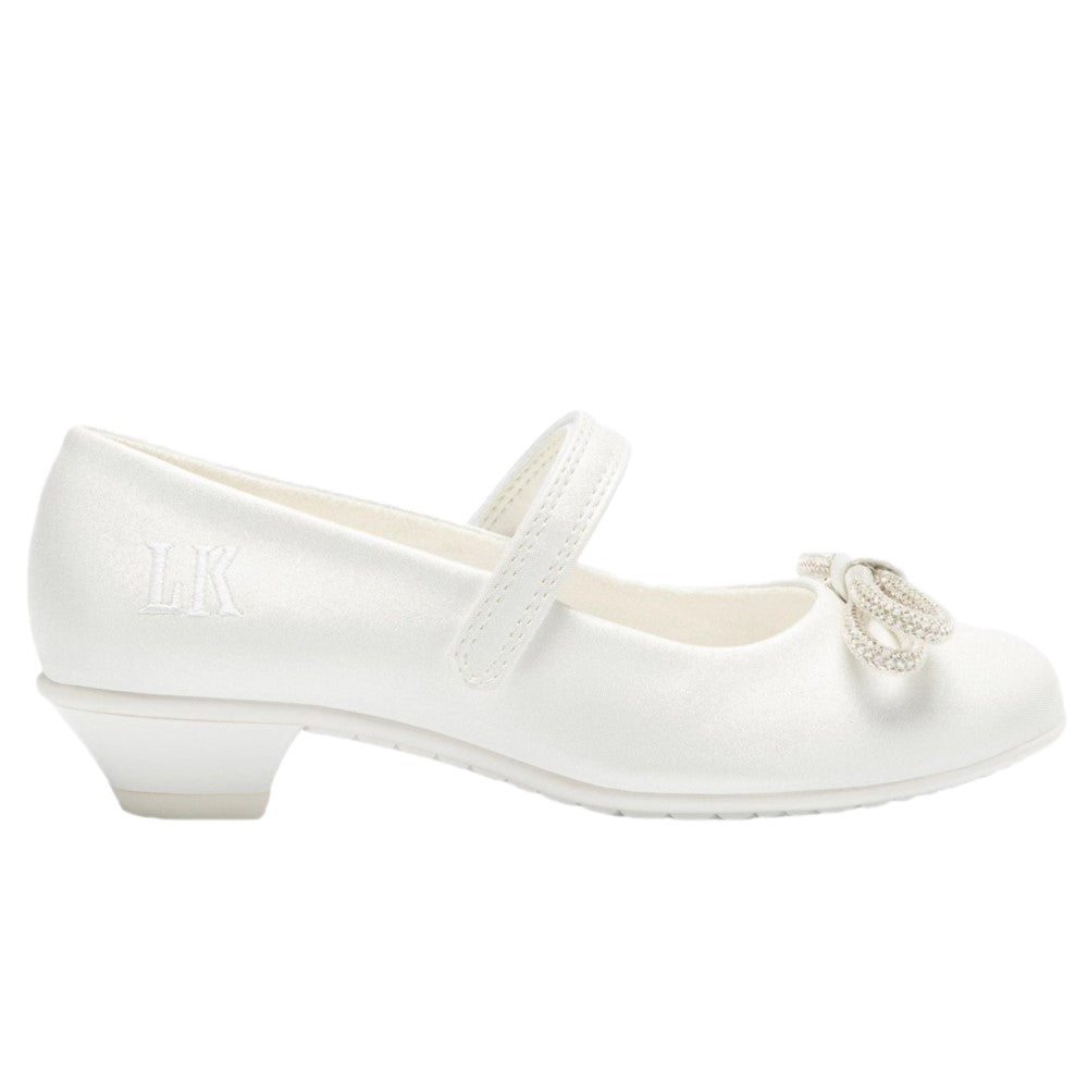 Scarpa LELLI KELLY modello ballerina con tacco alto 2 cm. ,chiusura velcro ,fiocchetto applicato effetto laminato ,logo ricamato laterale.