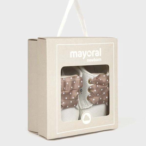 Scarpe MAYORAL da neonata con orsetto bianca con lacci a pois beige 16 - 19