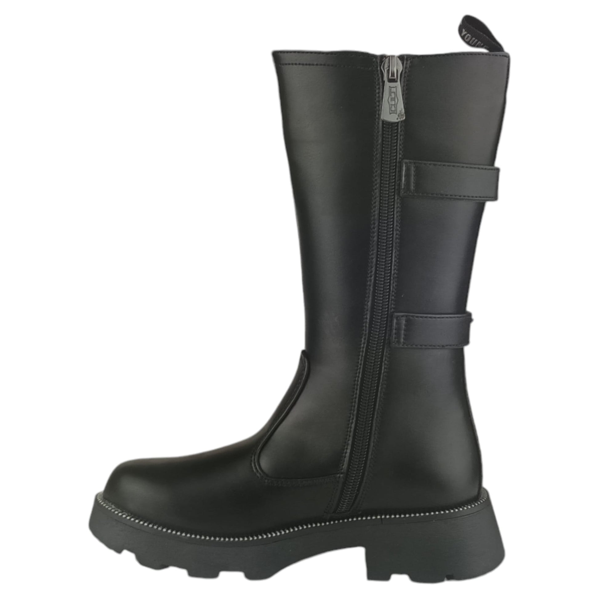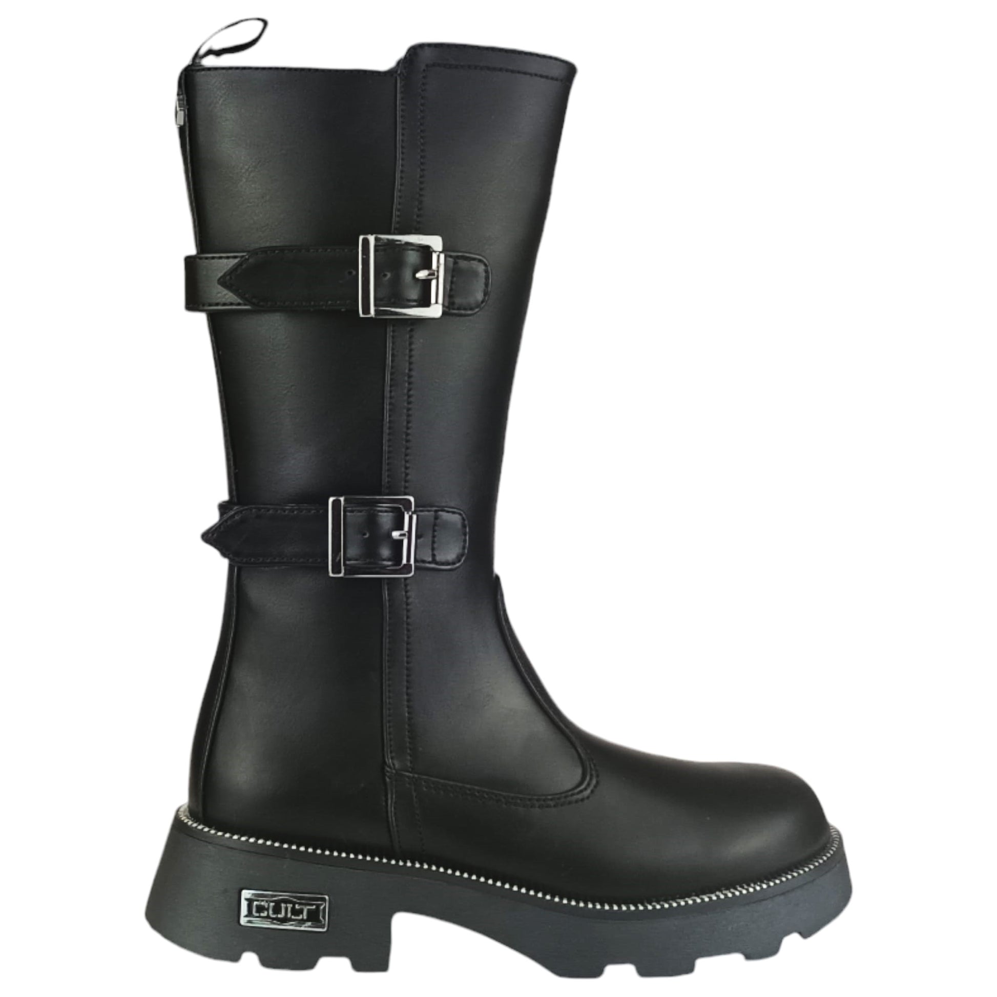 Stivale CULT con chiusura zip laterale , sottopiede in vera pelle ,doppia fibbia laterale , fondo in gomma antiscivolo con logo.