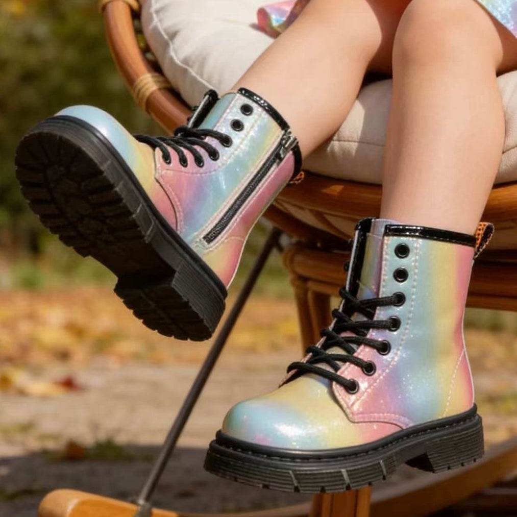 Stivaletto multicolor, con chiusura lacci e zip laterale. fondo in gomma antiscivolo.