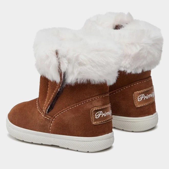 Stivaletti PRIMIGI in vera pelle con bordatura e fodera interna in ecopelliccia, chiusura velcro , sottopiede in vera pelle ,fondo leggero in gomma.