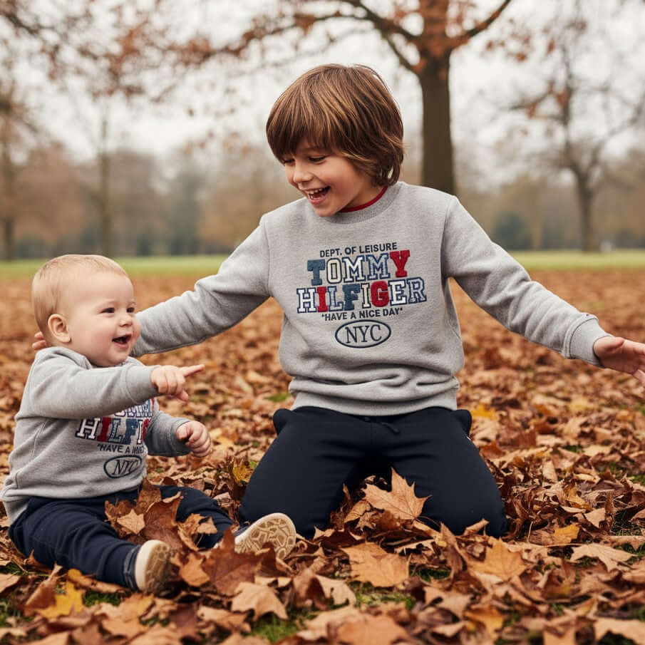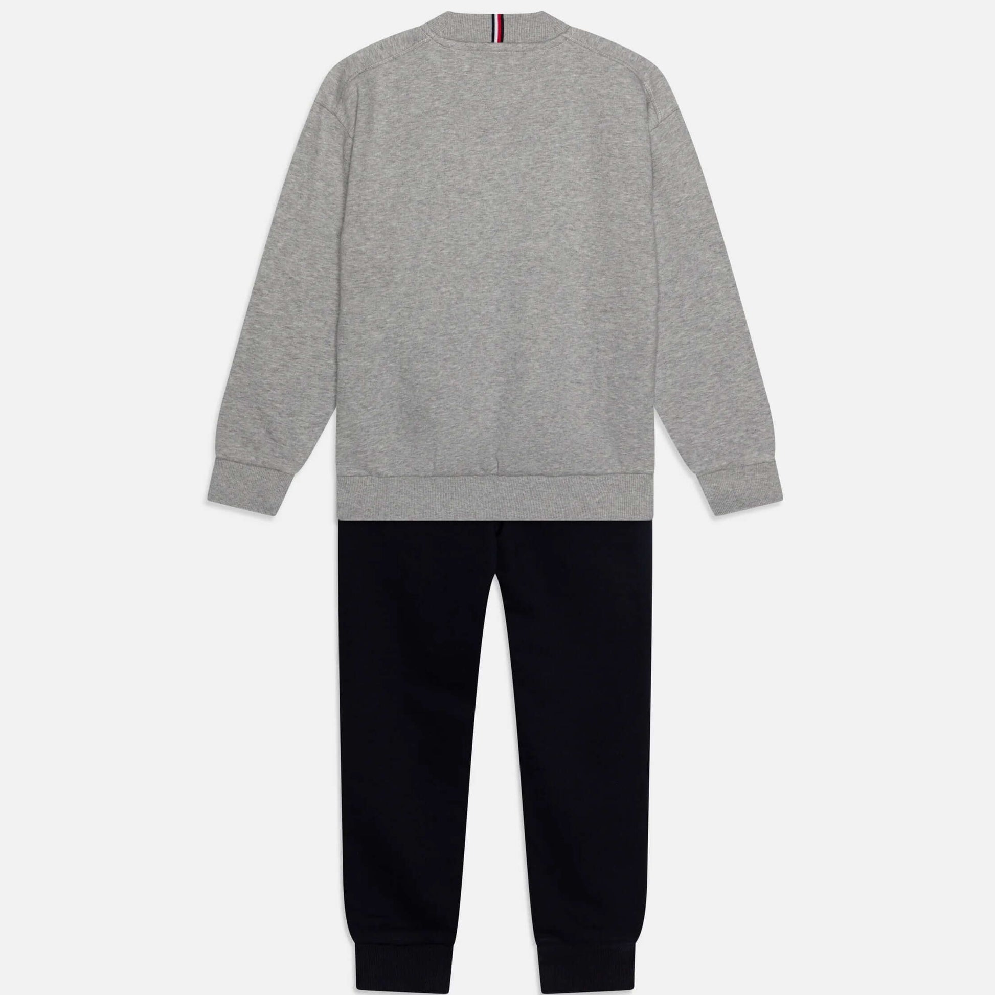 Tuta TOMMY HILFIGER grigia e blu con logo in felpa con interno garzato composta da felpa con logo e pantalone con elastico e laccetto in vita regolabile.