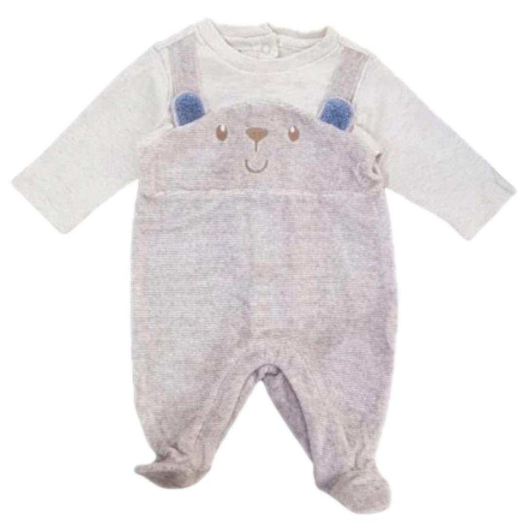 Tutina CHICCO in ciniglia e caldo cotone, modello finta salopette con ricami ed orecchie in tessuto e colore a contrasto applicate, chiusura con clips.