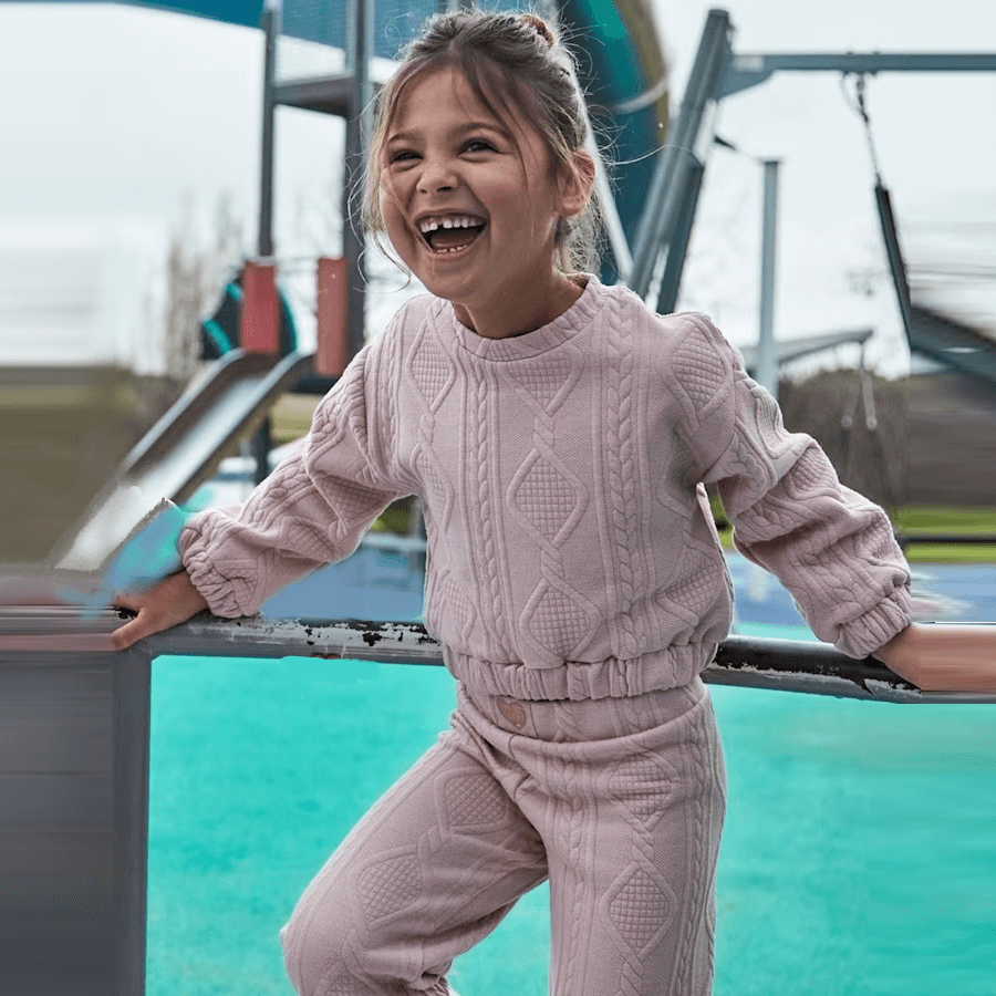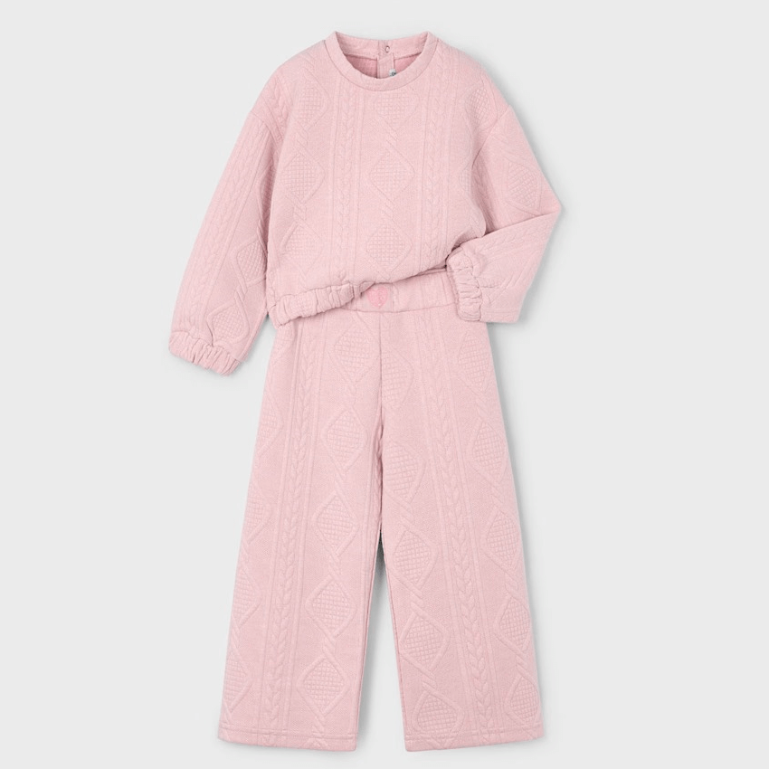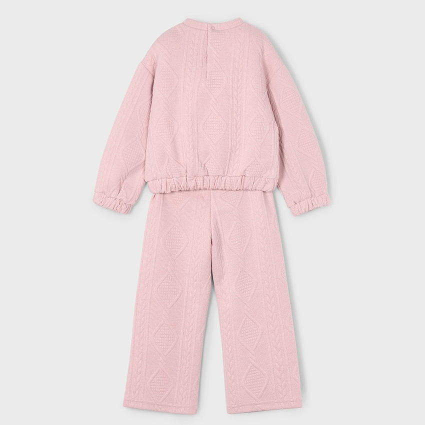 Conjunto de treino MAYORAL composto por sweatshirt e calças em tecido elástico macio e quente com padrão trançado.
