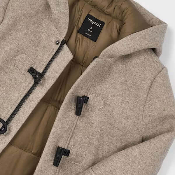 Casaco MAYORAL com sapos cinza e capuz.