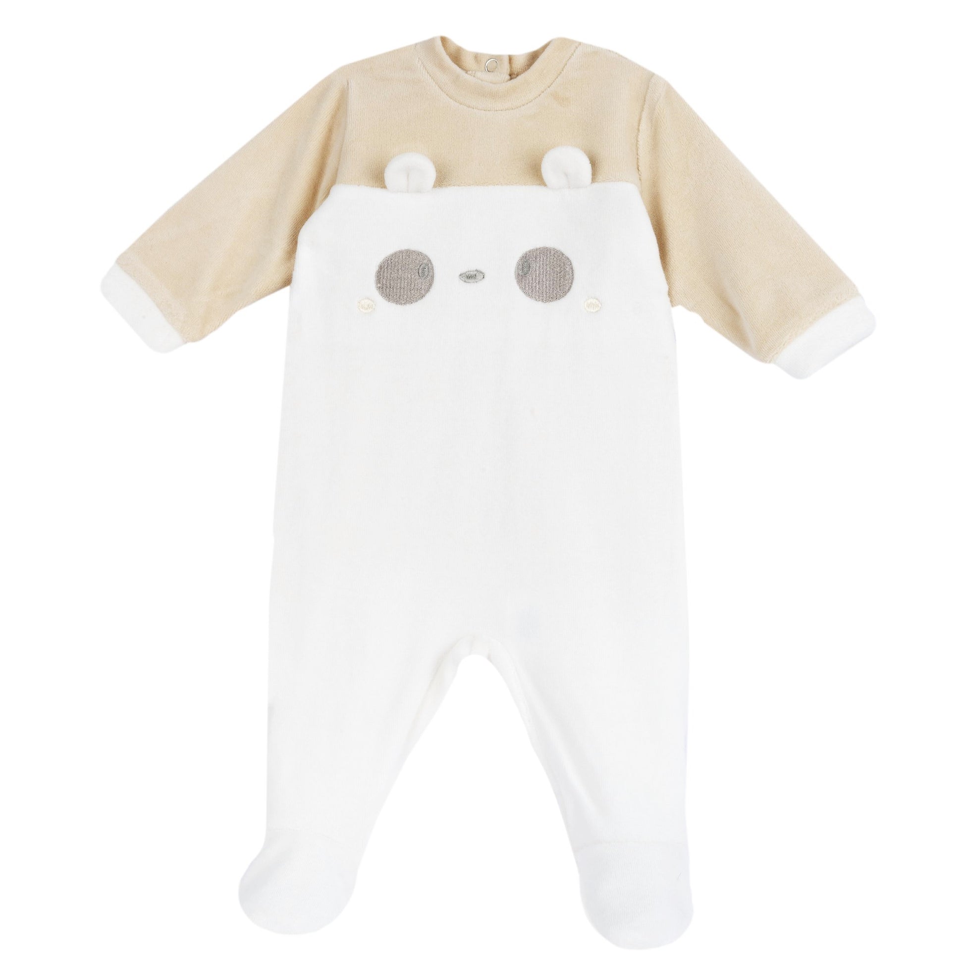 Chicco Jet em cinille confortável e macio com bordado, fechando clipes nas costas.