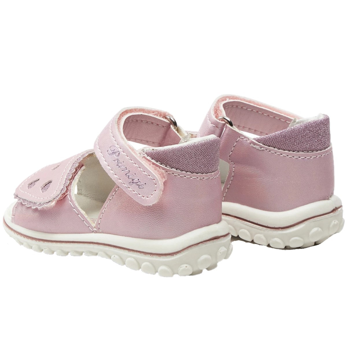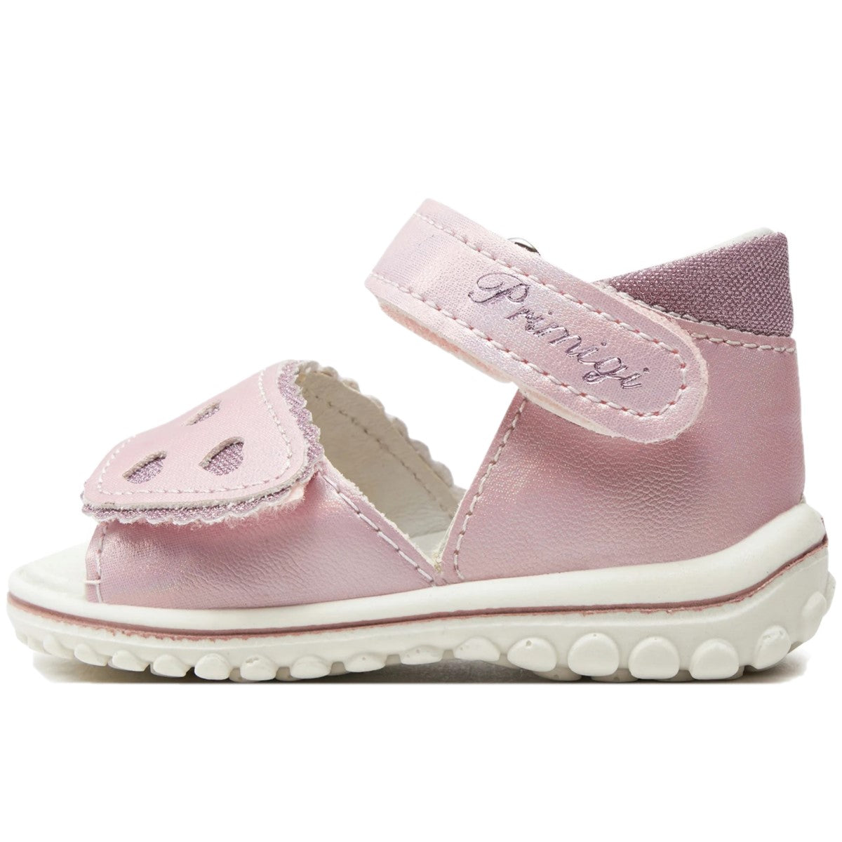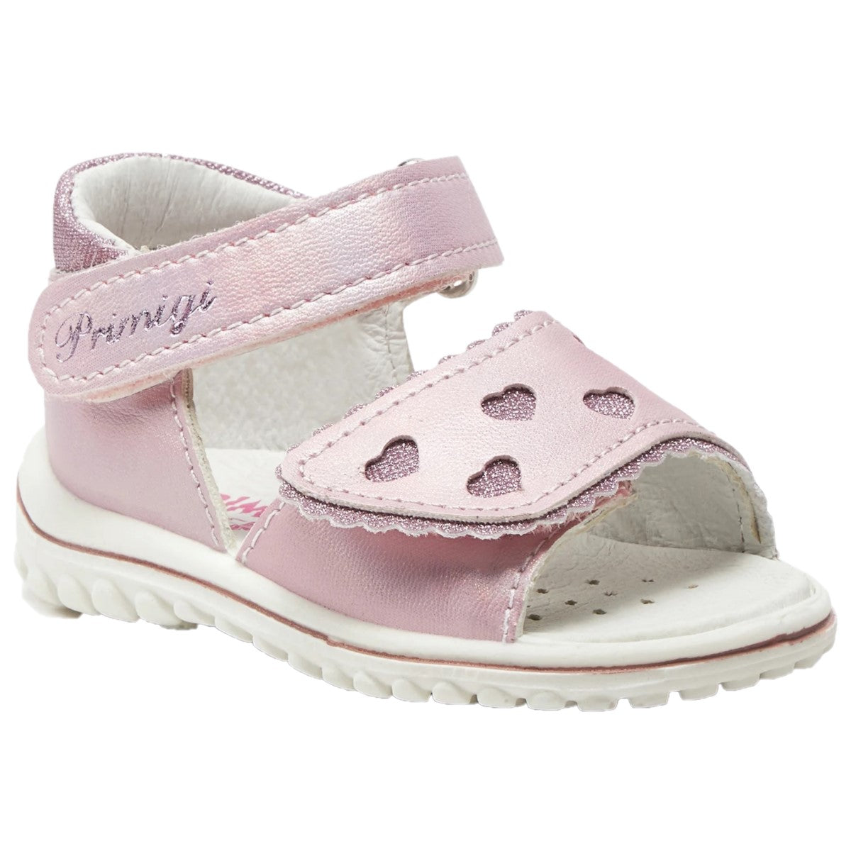Sandálias Primigi com fechamento de velcro duplo ajustável, inserções laminadas aplicadas, logotipo impresso aplicado, palmilha de couro real, fundo de borracha não deslocada flexível.