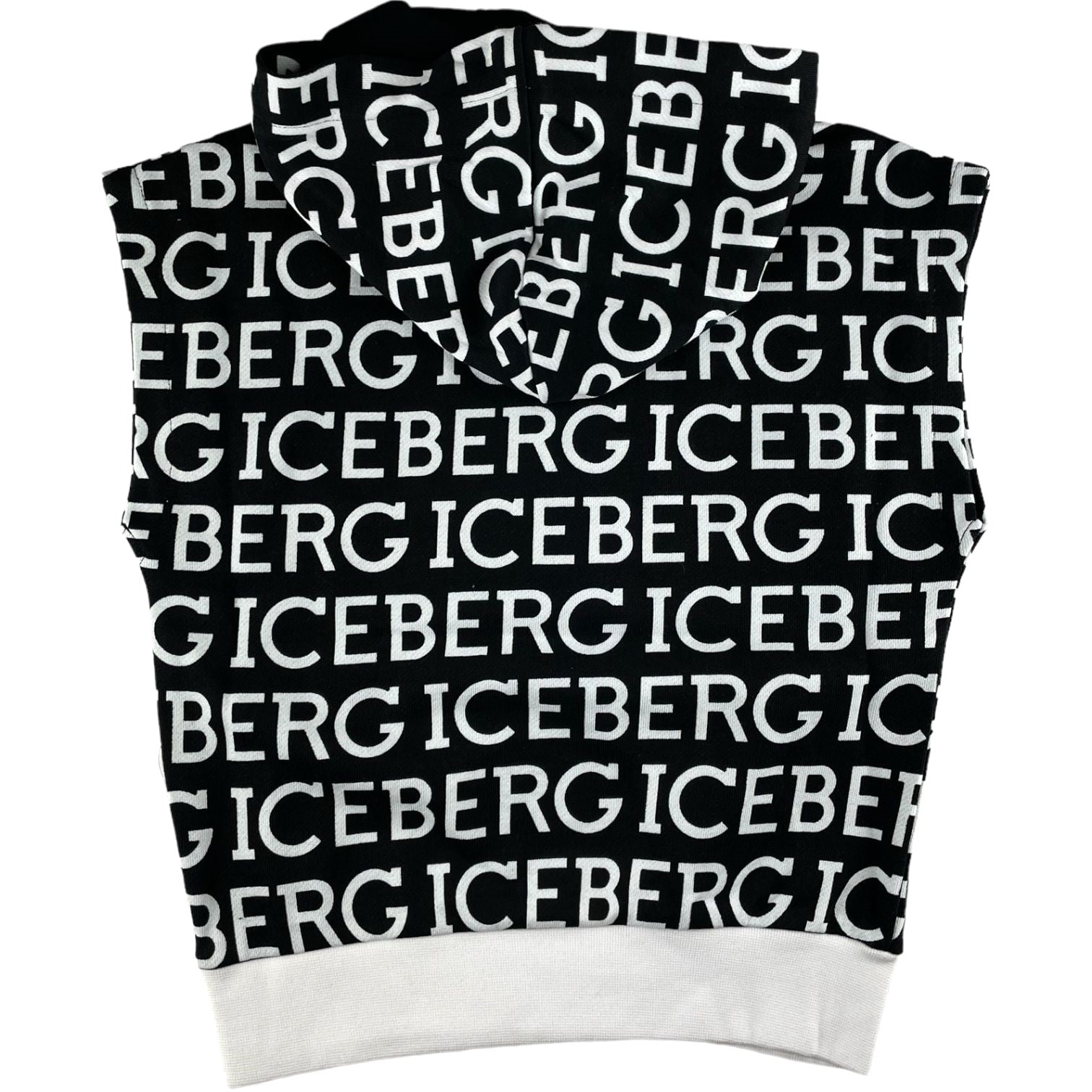 Modelo cultivado de moletom iceberg com capuz em algodão com um logotipo maxi de fantasia.