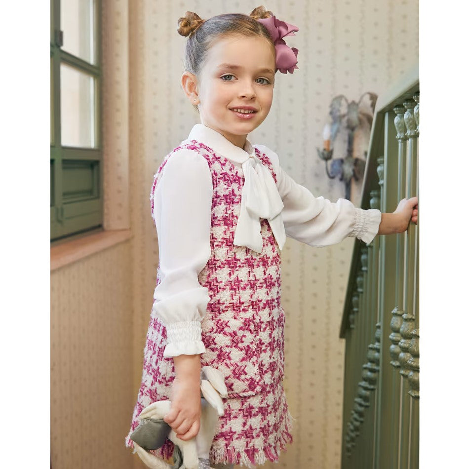 Abel e Lula Lula Spanha Espanha em Misto Fantasia Pied de Pouline Lanna laminada com bolsos aplicados, mangas, colarinho e arco de tecido contrastante, algemas elásticas, revestimento interno de algodão, fechamento de zíper nas costas.
